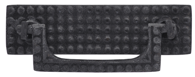The plate measures 3 3/8 inches long and 7/8 inches tall with a center to center mounting distance is 2 1/2 inches. Hand-finished detailing. This pull handle has a projection of approximately 1 1/2 inches.