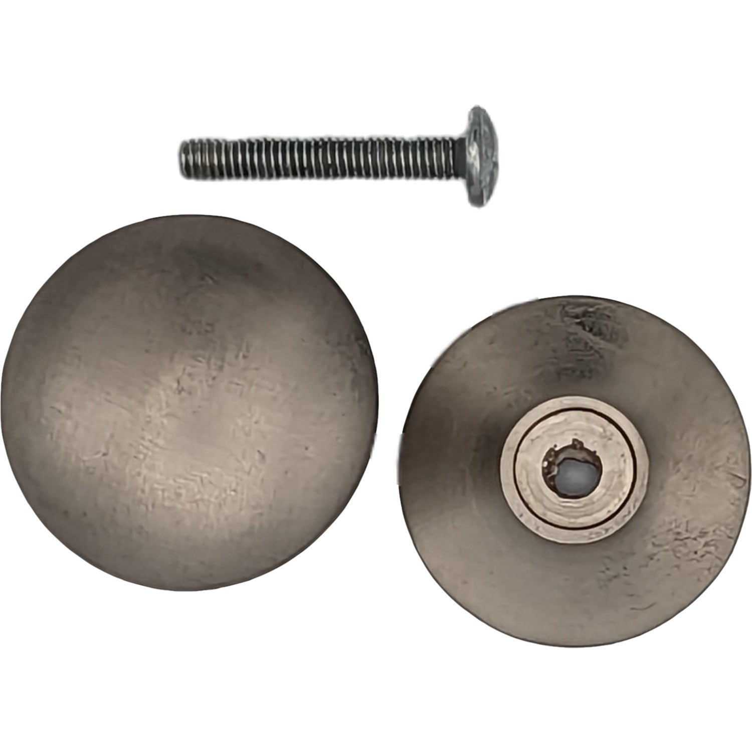 This cabinet knob measures approximately 1 1/4 inch in diameter with a projection of approximately 1 inch.This item comes with a removable back plate. Available in a variety of fine designer finishes. Comes complete with mounting screw and back plate. This particular product has a lead time of approximately 1 to 2 business days.