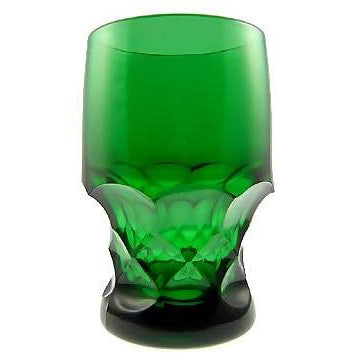 These glass tumblers are handmade in the United States for lookintheattic & company. The color is Emerald or Hunter Green. The glass pattern is called Georgia and these are the large 12 ounce tumblers in a set of four. The 12 ounce tumblers measures 5 1/4 inches tall.