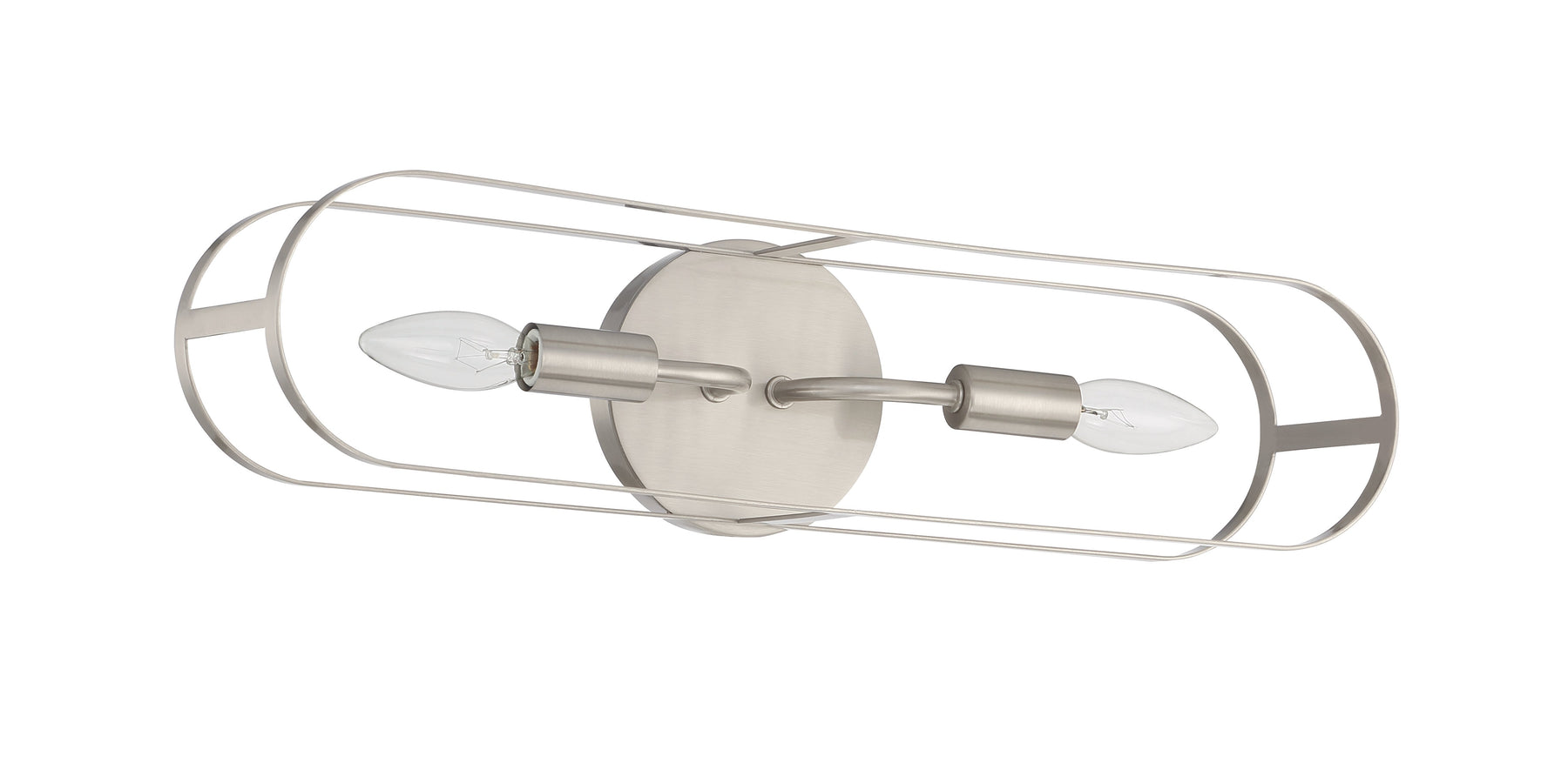 The Mindful 2 Light Linear Sconce in Brushed Polished Nickel combines contemporary elegance with functional design. With its arched open metal frames and rounded back plates, this damp-rated wall sconce adds a touch of art deco glam to any space. It requires two E12 candelabra base bulbs (not included), each with a maximum wattage of 60W. Measuring 20 inches in width, 20 inches in depth, and 5 inches in height, it features a 5-inch extension and a lead wire length of 6 inches, ensuring flexible installation. This sconce is ideal for various settings, including bathrooms and other humid areas.