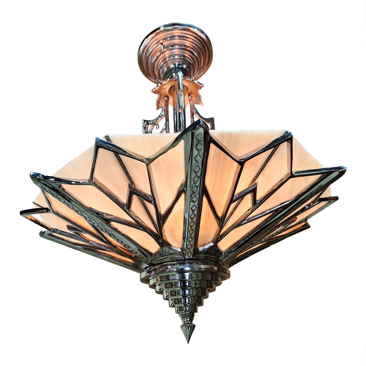 Illuminate your space with a touch of timeless glamour through the 17-inch Classic Art Deco Close Ceiling Light in a polished chrome finish. Meticulously crafted, this luminary masterpiece seamlessly marries the iconic Art Deco design with modern elegance. Elevate your interior with the soft, inviting glow and refined allure that this ceiling light imparts, creating a statement of enduring sophistication in any room.