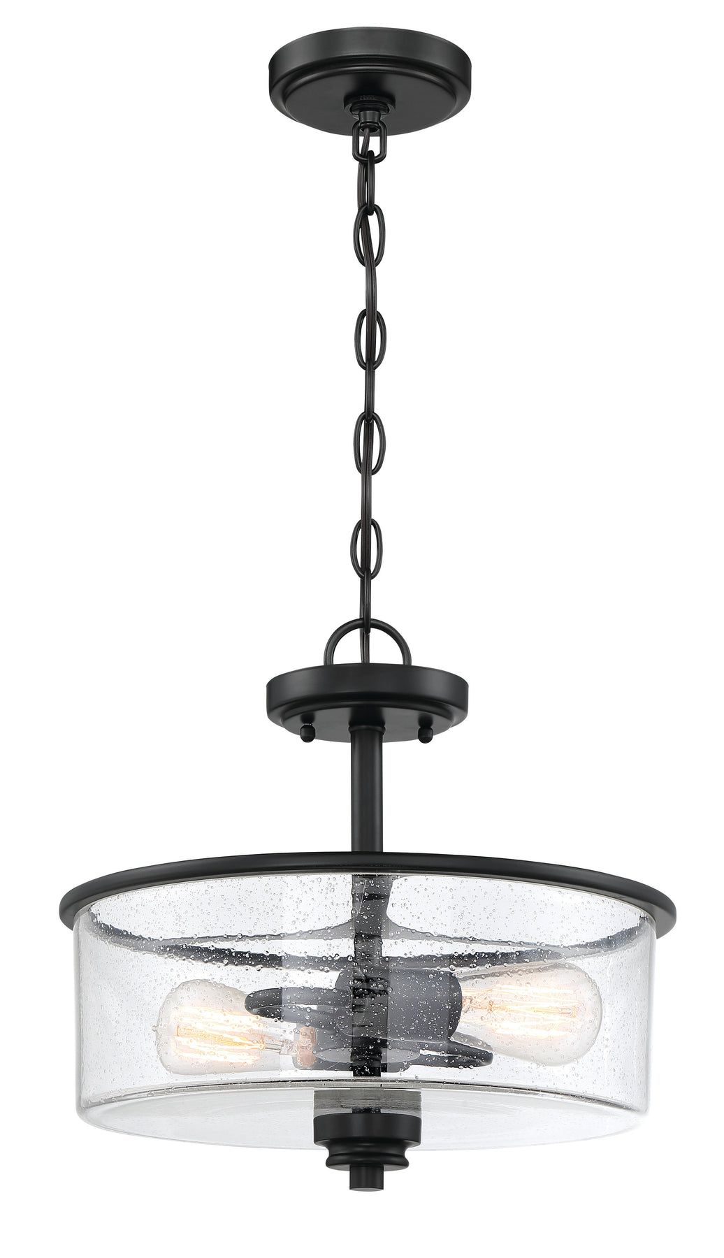 The Bolden 2 Light Convertible Semi Flush in Flat Black combines bold clean lines with the elegance of clear seeded or white frosted glass shades, creating a luxurious and effortless look. This indoor-rated fixture requires two medium base 60-watt bulbs (not included) and measures 13 inches in width, 13 inches in depth, and 15 inches in height. With a leadwire length of 120 inches and a canopy size of 4.75 by 4.75 inches, this convertible semi flush mount light is designed for versatility and style.