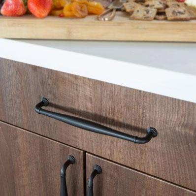 This cabinet pull is constructed from sturdy solid brass and features a transitional heritage design. Measures 8 5/8 inches overall with a 8 inch center to center mounting distance. Features a 1 1/2 inch projection and comes complete with mounting hardware. Available in a several finishes such as satin brass, oil rubbed bronze, polished nickel, satin nickel, flat black and polished chrome. The average lead time for this pull is approximately 3 to 5 business days.
