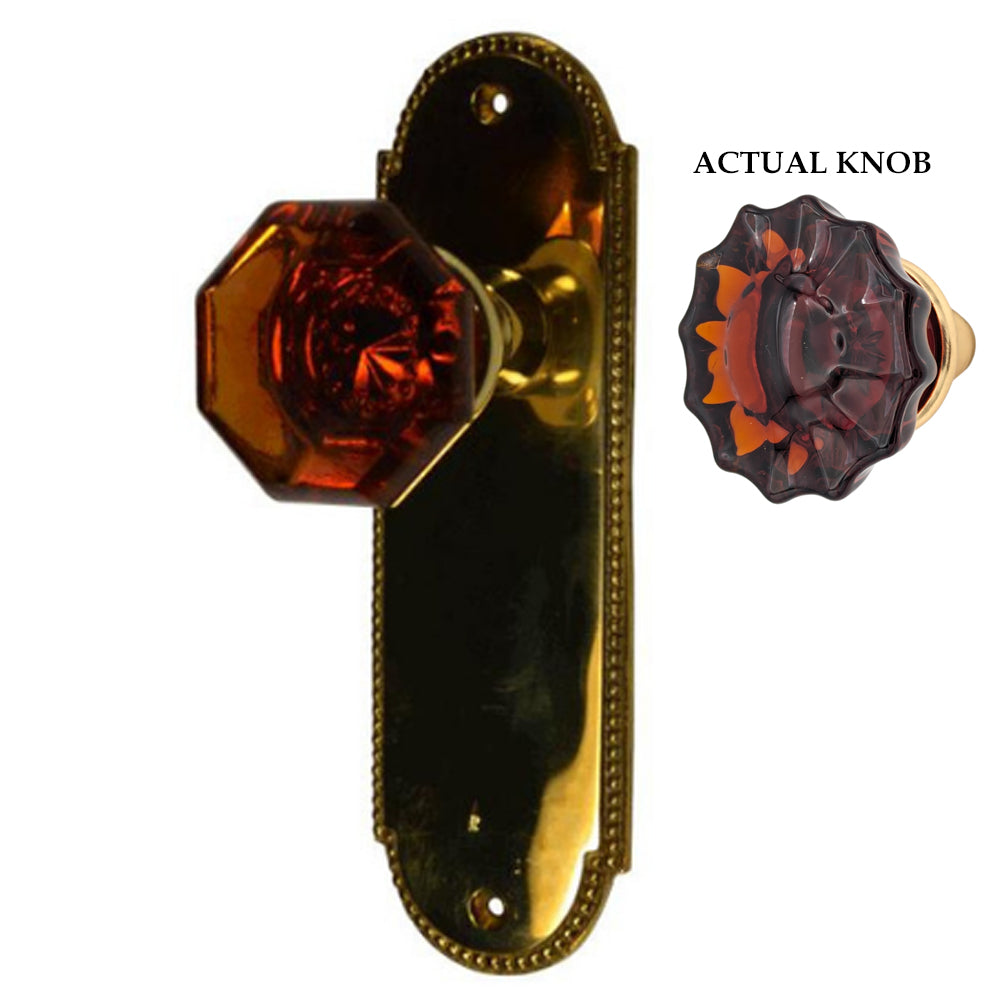 Arched Beaded Backplate Door Set with Fluted Amber Glass Door Knobs (Several Finishes Available)