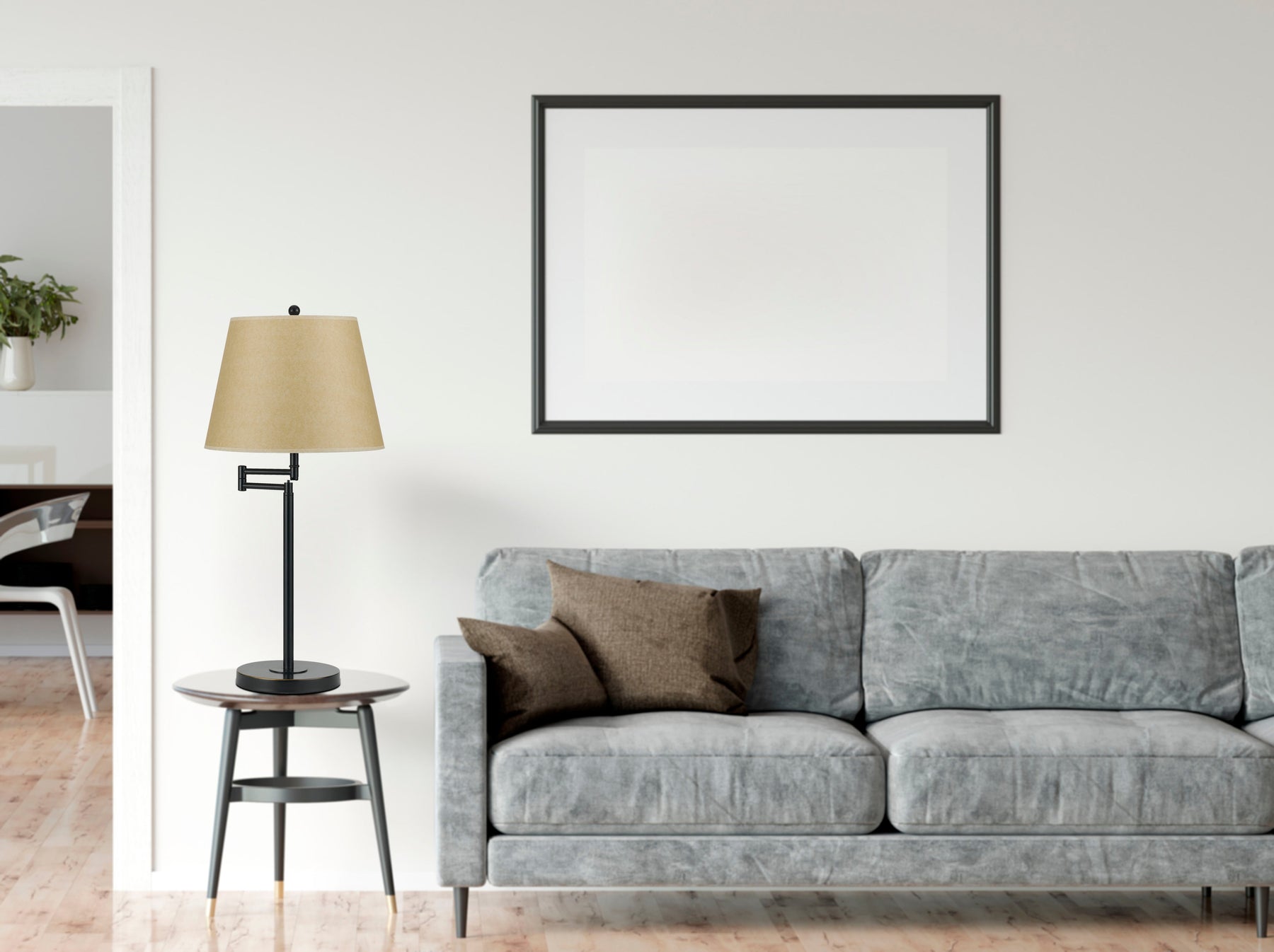 The 150W 3-Way Andros Metal Swing Arm Table Lamp (Product No. BO-2077TB-DB) is a versatile and stylish lighting option for any space. Featuring a durable metal construction in an attractive dark bronze finish, this lamp includes a tan hardback shade with a spider type design. The lamp's 3-way mechanism allows for optimal control of light, making it suitable for various activities. With a height of 27 inches and a 6-foot cord, it offers flexibility in positioning. Assembly is required, and it comes with a one-year warranty against defects in material and workmanship.