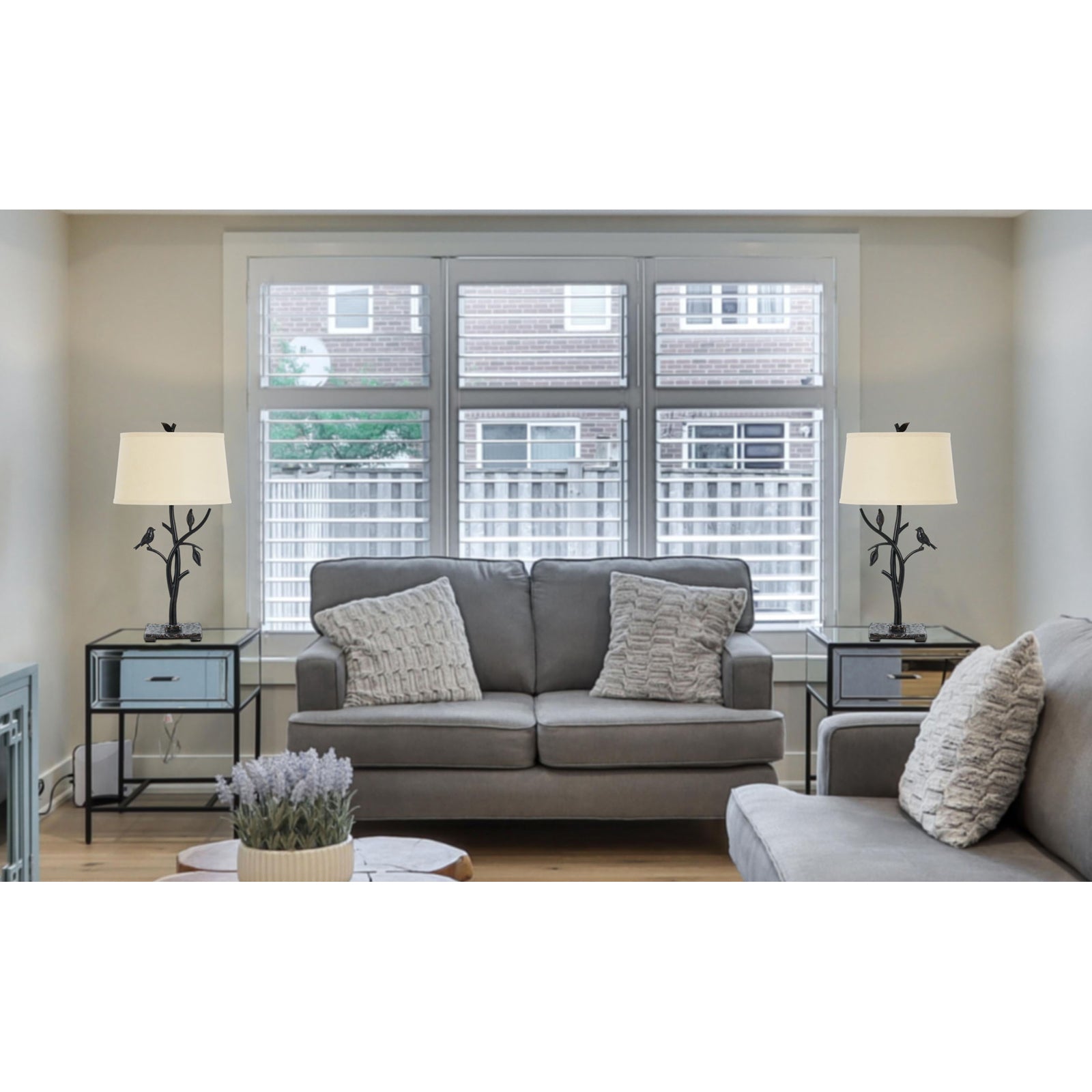 The BO-2301TB 150W 3 Way Medora Iron Table Lamp features a durable iron construction with an elegant forged iron tree and bird design, complemented by a charming hammered base. This stylish lamp stands at 29 inches tall and includes a spider type shade that enhances its aesthetic appeal. With a 6-foot cord for convenient placement and a 3-way switch type for adjustable lighting, this lamp is designed for both functionality and style. It requires a single E26 base bulb (not included) with a maximum wattage of 150W and boasts a one-year warranty against defects in material and workmanship.
