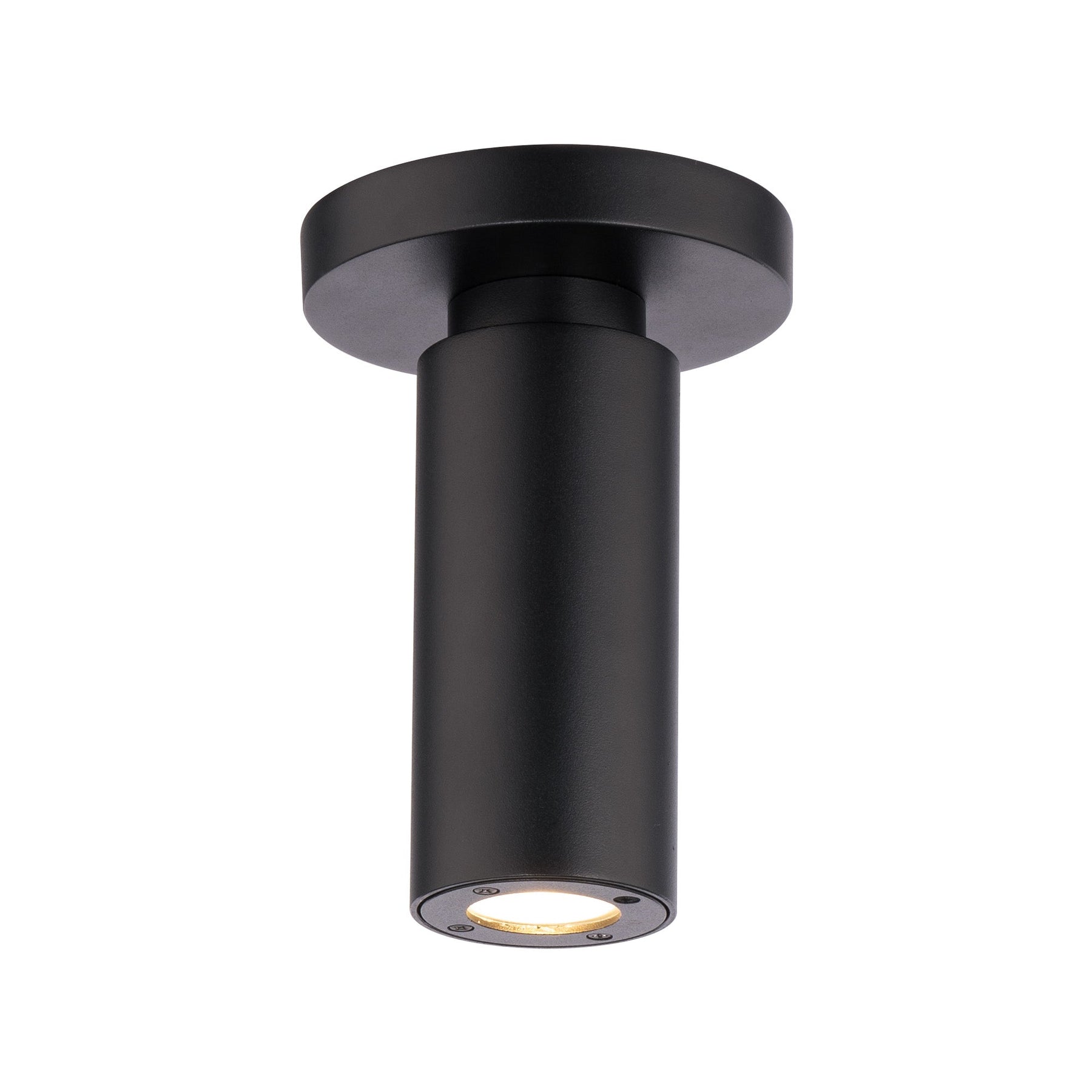 Caliber 5in LED Flush Mount 3000K in Black. Light projection tuned with precision. The Caliber outdoor ceiling mount joins a family of wall lights and a single pendant. With cylindrical aluminum body construction and acrylic diffuser, features a clear downward beam of light. Caliber is wet location listed - it can be used indoor or outdoor. This fixture can be mounted only on the ceiling. Universal Input Voltage Driver (120V-240V-277V) concealed in fixture. Smooth and continuous dimming with electronic low voltage 0-10V, ELV,TRIAC dimmer options. High Powered Replaceable LED Module CRI: 90, Rated Hours: 50000, Color Temp: 3000K Standards: ETL & cETL UL 1598 listed with IP65 rating for Wet Locations. CEC Title 24 compliant.