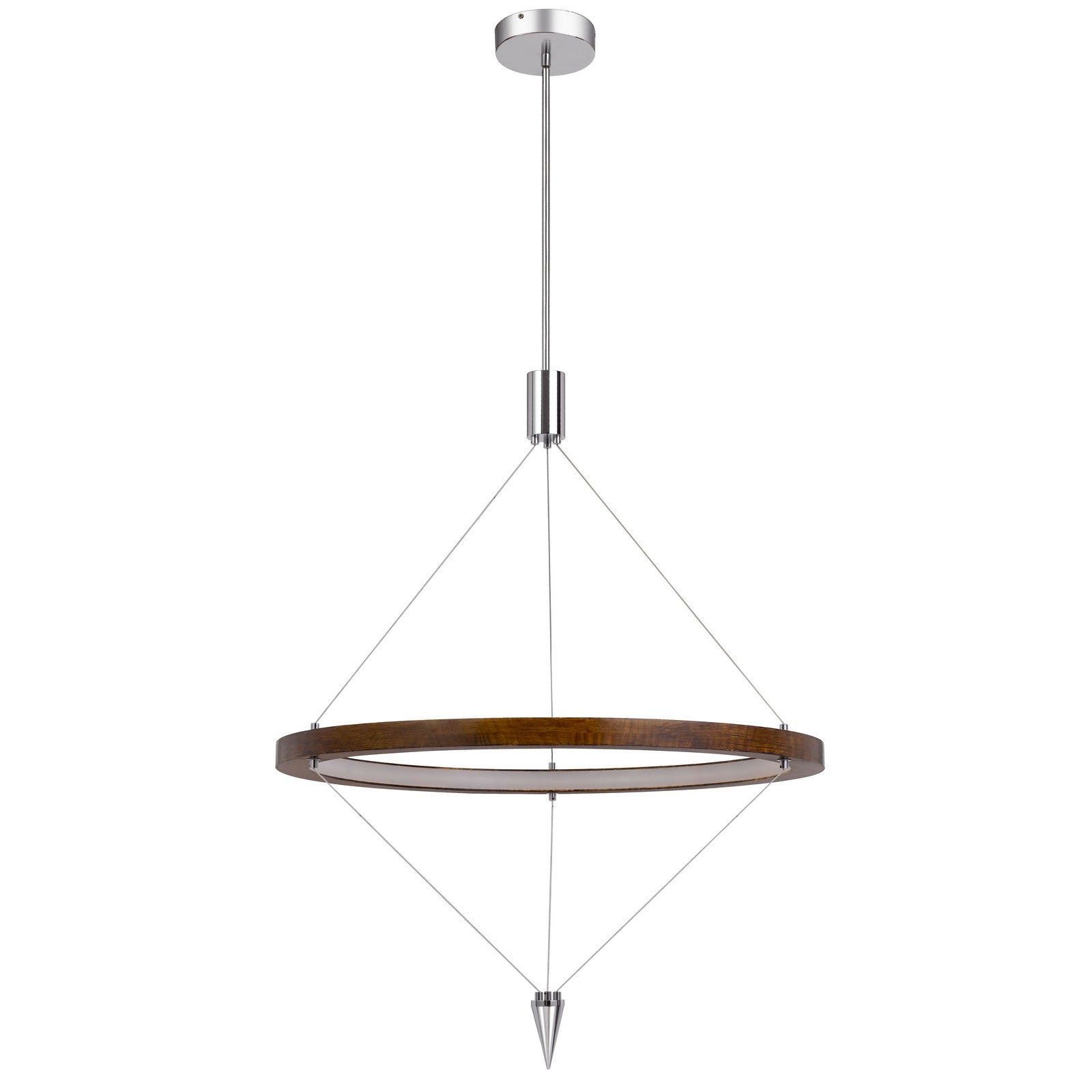 Viterbo integrated dimmable LED pine wood pendant fixture with suspended steel braided wire. 24W, 1920 lumen, 3000K