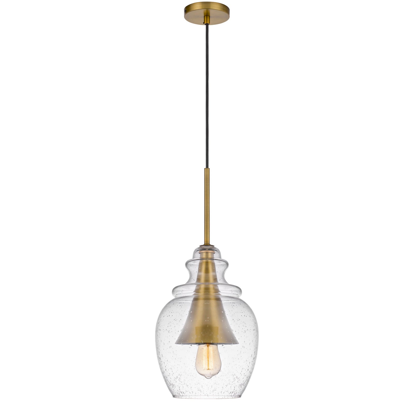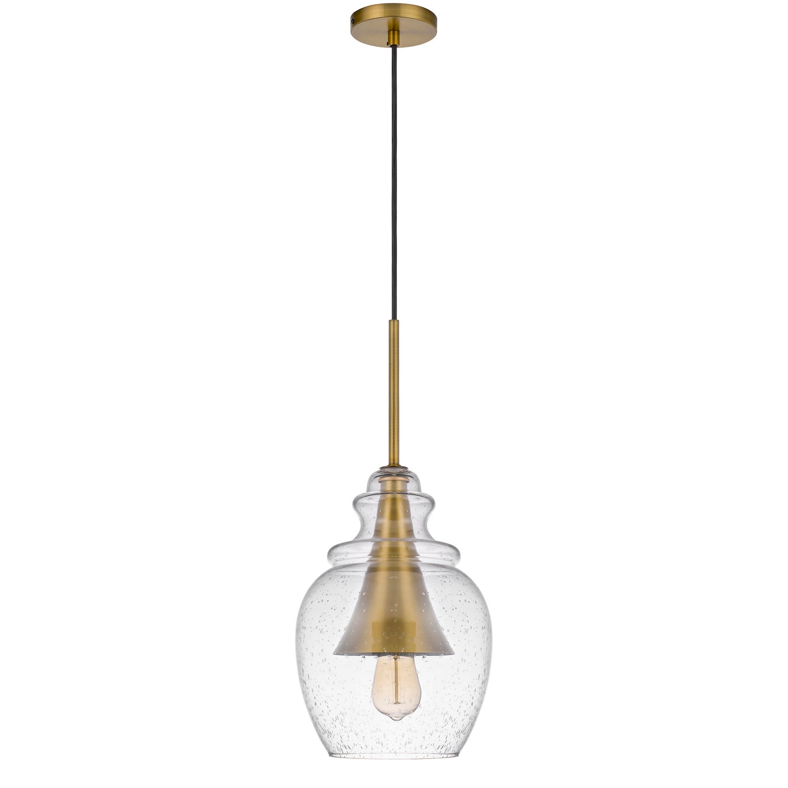 The Girona Glass Drop Pendant (Product No. FX-3780-1) is a stunning addition to any kitchen, island area, or foyer. This pendant features a durable glass and metal construction, highlighted by a seeded glass shade and an antique brass fluted accent. It comes with an antique brass canopy and six feet of cord, allowing for versatile installation. The fixture is designed for one E26 base bulb (not included) with a maximum wattage of 60W. Additionally, it requires minor assembly and ships in one carton, making it easy to install. Cal Lighting provides a one-year warranty, ensuring that this pendant will be free from defects in material and workmanship.