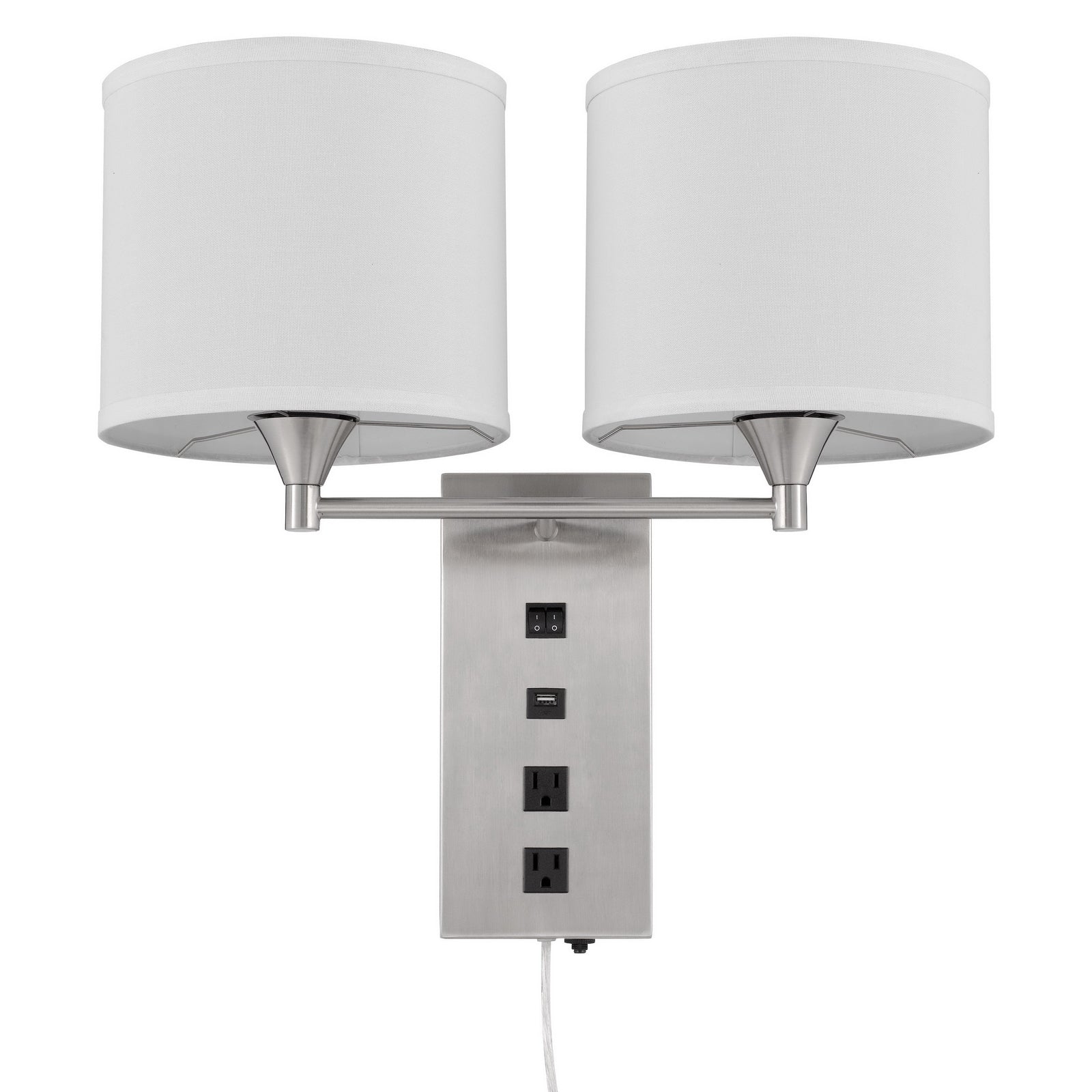 60W X 2 REEDSPORT WALL LAMP WITH 2 POWER OUTLETS AND 1 USB CHARGING PORT Cal Lighting