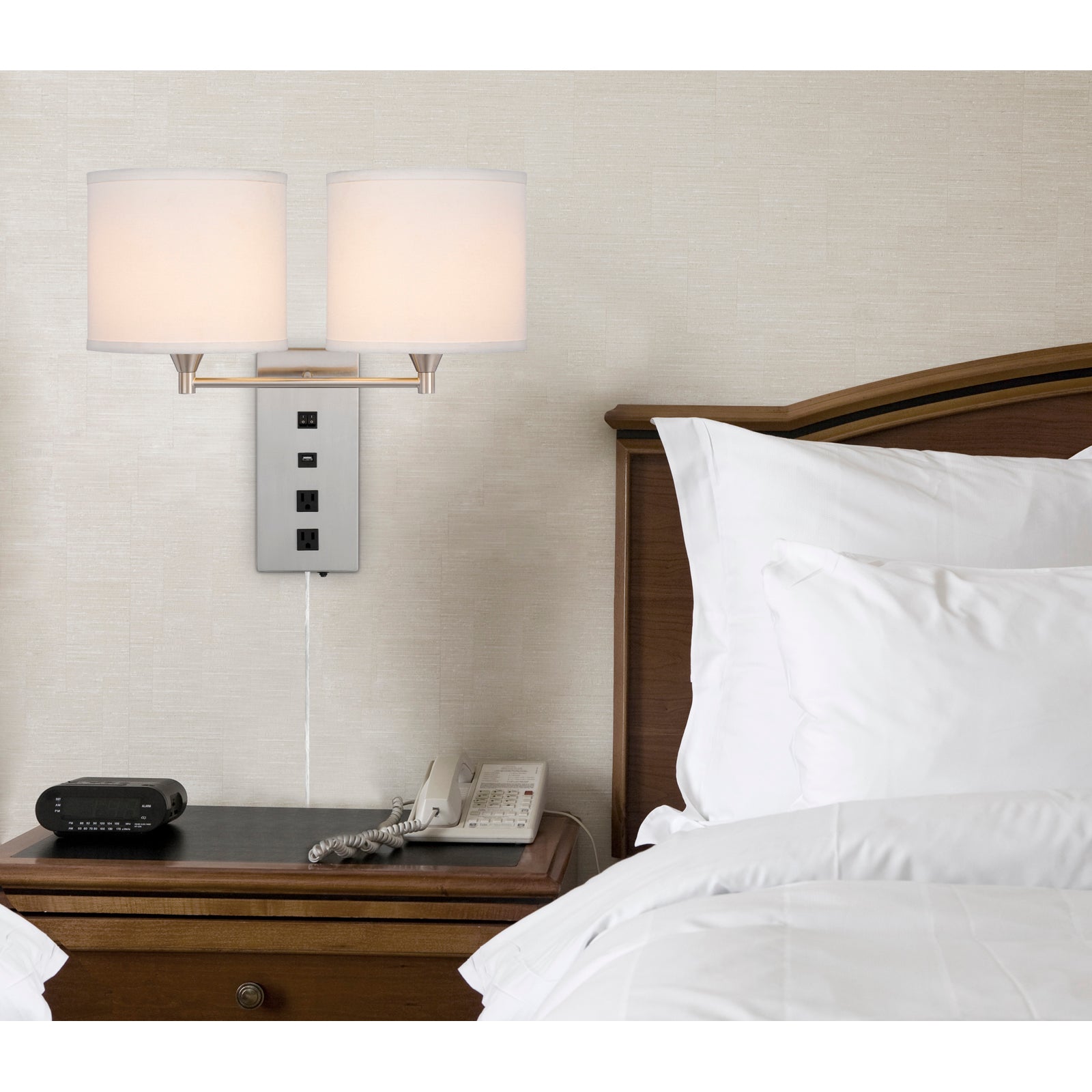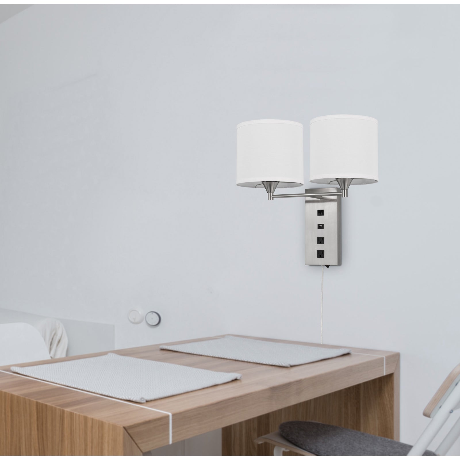 60W X 2 REEDSPORT WALL LAMP WITH 2 POWER OUTLETS AND 1 USB CHARGING PORT