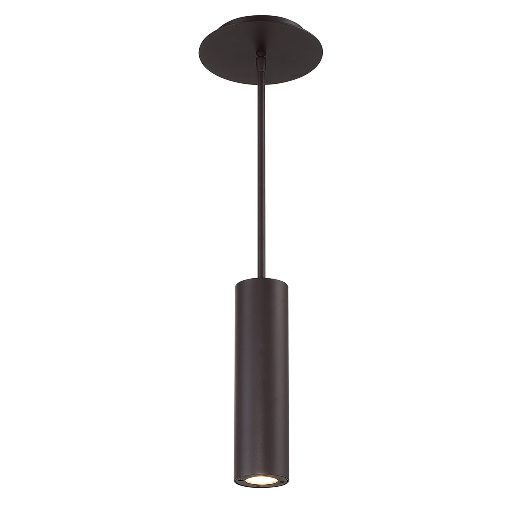 Caliber 2.7in LED Outdoor Pendant 3000K in Bronze. Look no further than Caliber for an LED pendant great for indoor as well as outdoor applications. Enjoy the clean look of its sleek cylinder with minimal mounting hardware. Available in brushed aluminum, black, bronze and white, this fixture has a factory sealed light engine and is Wet Location listed to weather the elements. Integral swivel for sloped ceilings. Down light only. 10ft of wire included to extend pendant up to a total of 120in. Three 12in down rods and one 6in down rod included. Additional down rods sold separately. 120V AC LED Technology - no driver or transformer required. Easily fits on a pancake junction box. 277V, 240V, or custom CCT options available by special order. Smooth and continuous dimming with an electronic low voltage (ELV) dimmer. High Powered Replaceable LED Module CRI: 90, Rated Hours: 75,000, Color Temp: 3000K Standards: ETL & cETL UL 1598, IP65 listed for Wet Locations. CEC Title 24 Compliant.