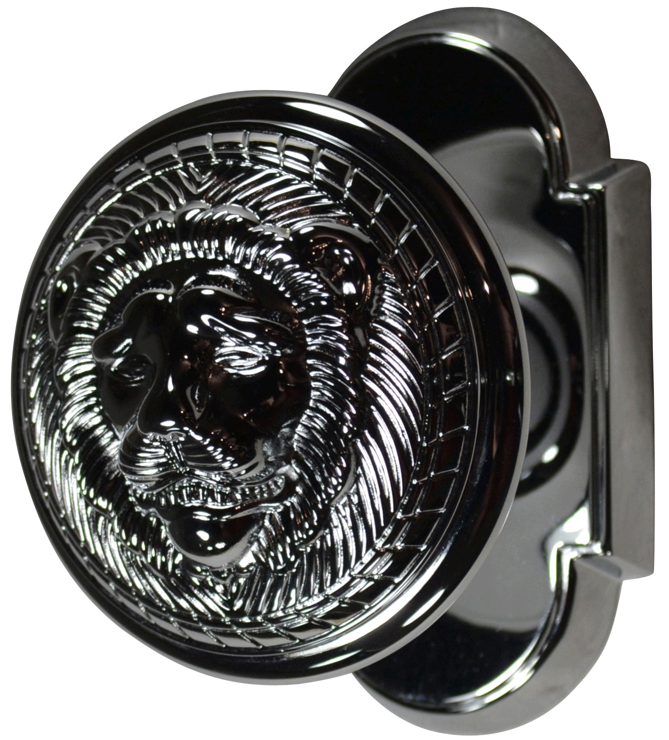- Solid Brass MGM Lion Head Door Knob Set With Arched Rosette