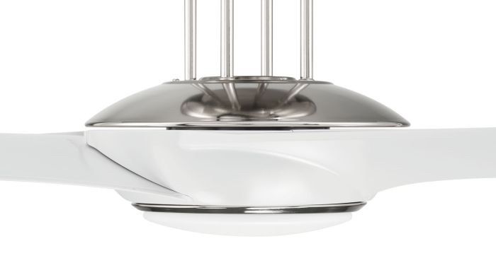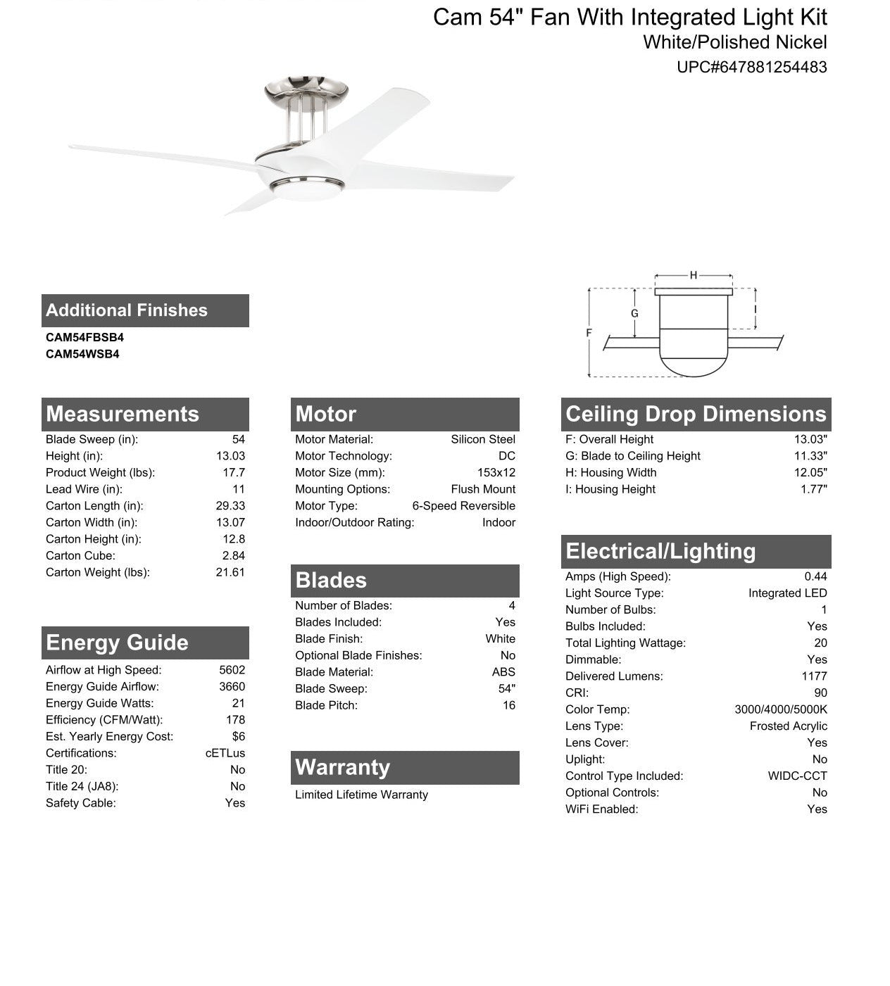 Low ceiling? No Problem! Part of our Low Ceiling Solutions Series, the Cam 54" updated flushmount ceiling fan offers smooth lines and a low-profile body with four sleek blades, an integrated 20W dimmable LED 3 CCT 3000-5000K light with optional lens cover, and is easily controlled with either the included remote control or the integrated WIFI featuring breeze and timer functions compatible for use with most smart home devices, smart phones and systems.