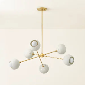 The Saylor Chandelier by Mitzi features a beautiful Aged Brass and Soft Cream finish, making it an eye-catching lighting fixture. With a generous width of 40 inches and a height of 19.5 inches, this chandelier accommodates six E26 medium base bulbs (not included), each with a maximum wattage of 15W. Ideal for various indoor settings, it does not require a plug-in and is designed for an electrical rating that meets UL Damp standards, ensuring durability in areas prone to humidity.