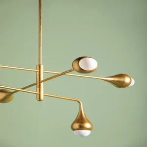 The LUCIEL chandelier by Mitzi is a stunning addition to any space, featuring a vintage gold leaf finish that offers a touch of elegance. With a width of 34.75 inches, a height of 25.25 inches, and a length of 48.00 inches, this chandelier showcases six lamps powered by E26 medium base sockets, each requiring a maximum wattage of 15W. It is compatible with G25 recommended bulbs and is UL Damp rated, making it suitable for humid areas. This chandelier combines functionality and style, making it perfect for dining rooms or living areas.