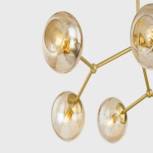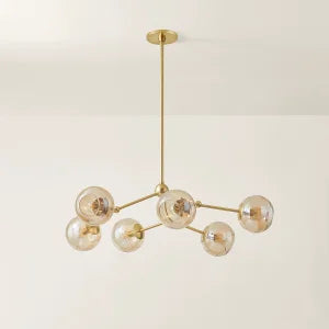 The Trixie Chandelier by Mitzi is a stunning lighting fixture that beautifully combines elegance with functionality. With a width of 34.75 inches and a height of 13.25 inches, it makes a striking statement in any room. This chandelier features six lamps, each accommodating an E12 candelabra base bulb (not included), with a maximum wattage of 8W. The shade, crafted from high-quality glass, adds a sophisticated touch, while the aged brass finish enhances its classic appeal. Designed with an electrical rating suitable for damp locations, this chandelier seamlessly fits into various settings and elevates your decor.