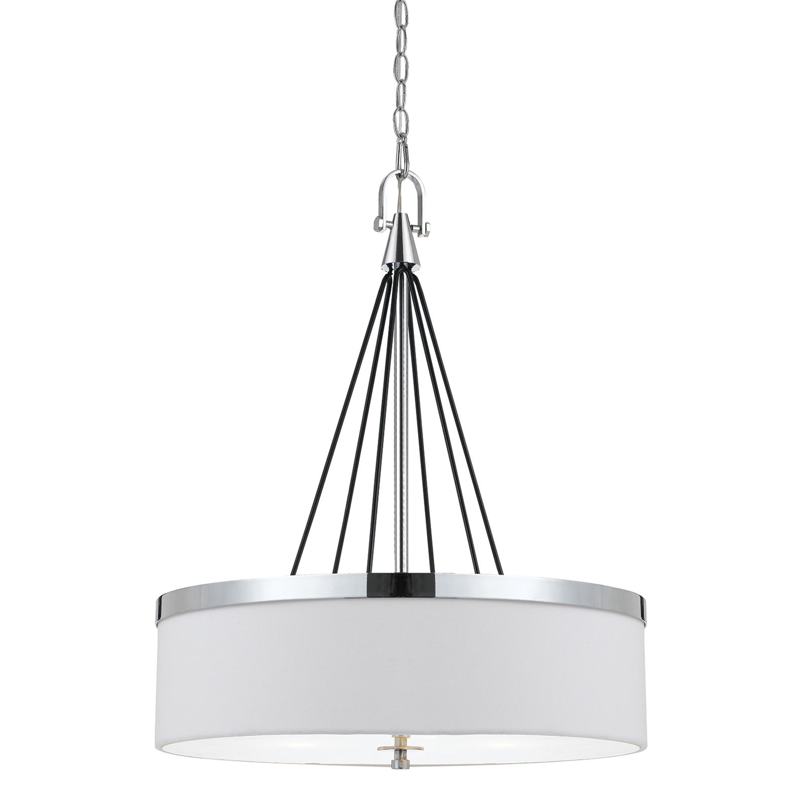 The FX-3642-3 Rimini Pendant Fixture is an elegant lighting solution that combines durability and style with its hardback fabric shade and sturdy metal construction. This fixture accommodates three A19 bulbs, each with a maximum wattage of 60W, ensuring ample illumination. It includes a 6-foot chain for customizable hanging height and comes complete with an acrylic diffuser and canopy. With a package dimension of 23.50 inches in length, 23.50 inches in width, and 10.00 inches in height, the Rimini Pendant Fixture is a perfect addition to various spaces and ships conveniently in one carton. Assembly is required, and it features a one-year warranty against material and workmanship defects.