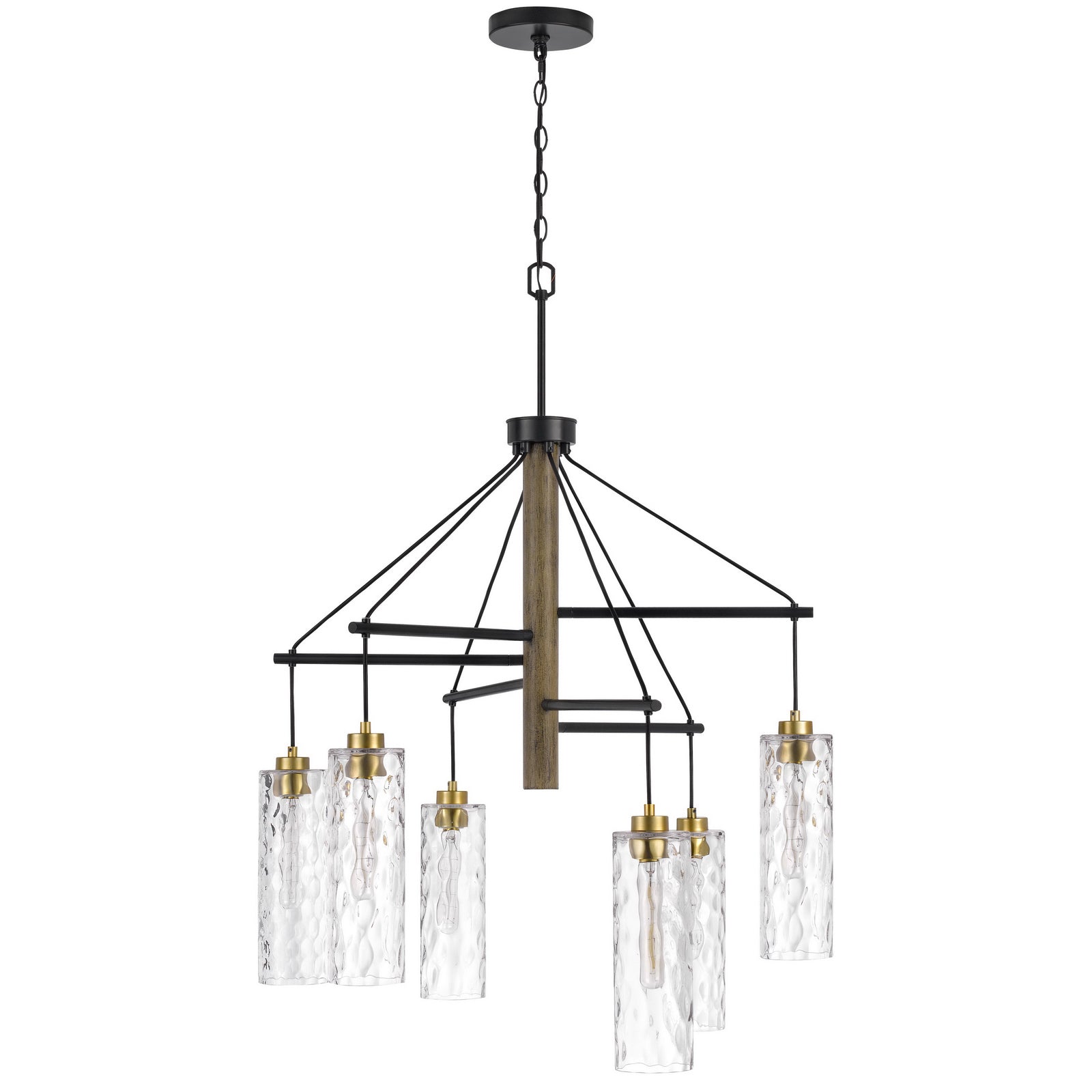 The FX-3788-6 Williston chandelier is a stunning and functional lighting fixture that enhances any home decor. With its robust durable metal and wood construction, it features a total of six clear textured glass shades, providing an inviting glow. The chandelier offers a maximum wattage of 60W per bulb, uses an E26 bulb base, and requires assembly. This modern piece comes with a six-foot adjustable chain and a canopy for easy installation and can be shipped in one carton. Additionally, it includes a one-year warranty against defects, allowing you to refresh your space with confidence.