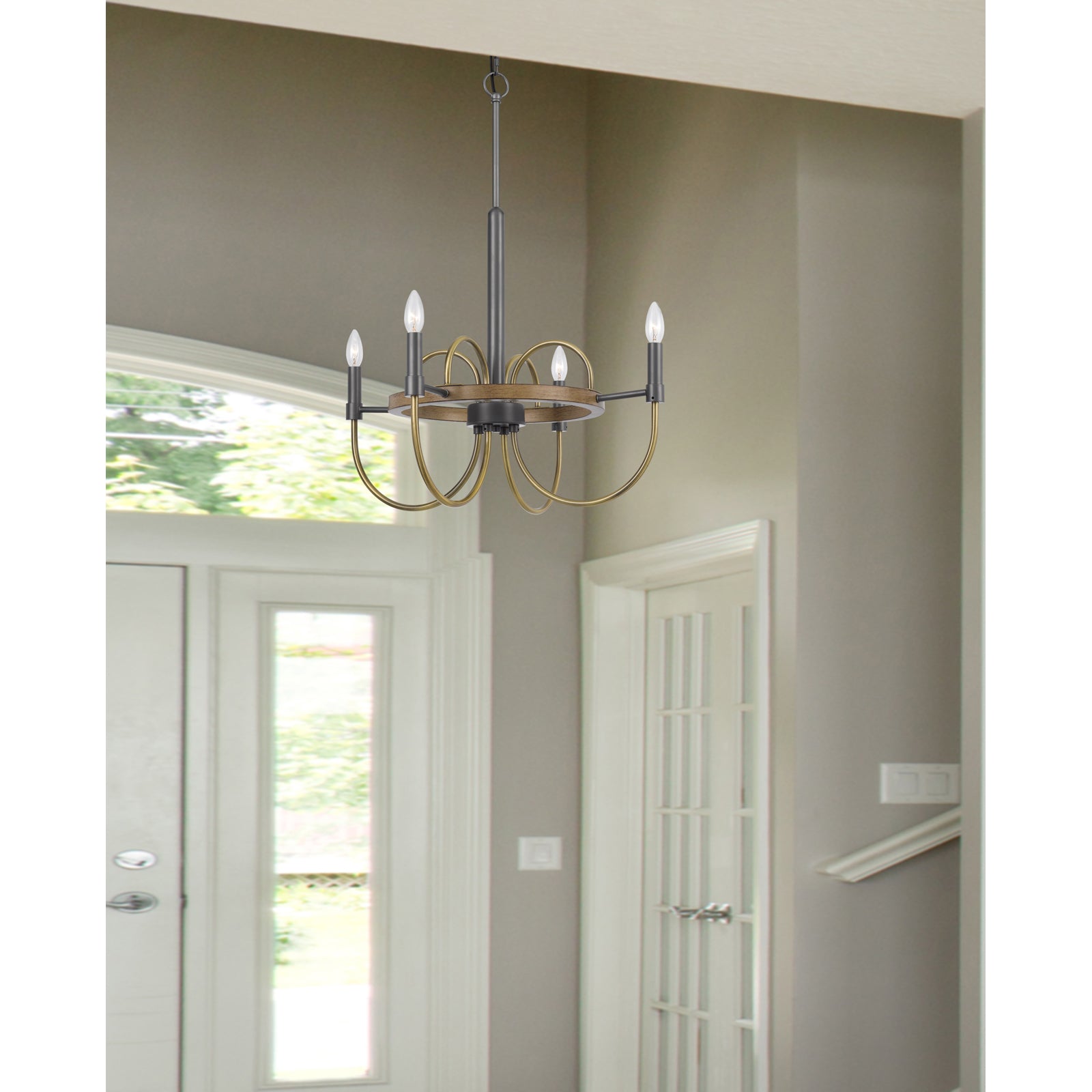 The Seagrove 60W x 4 Metal Chandelier is a stunning candelabra style fixture that beautifully balances contemporary design with classic elegance. Hardwired for easy installation, this chandelier is made with durable metal construction and features a wooden circular center base. It includes a 72-inch dark bronze chain and ships in one carton with a canopy included. This chandelier accommodates four E12 candelabra base bulbs (not included), operates at a maximum wattage of 60W each, and requires minor assembly. With a lead time of 3 to 5 business days, it comes with a one-year warranty against defects in material and workmanship, making it a reliable choice for enhancing your home decor.