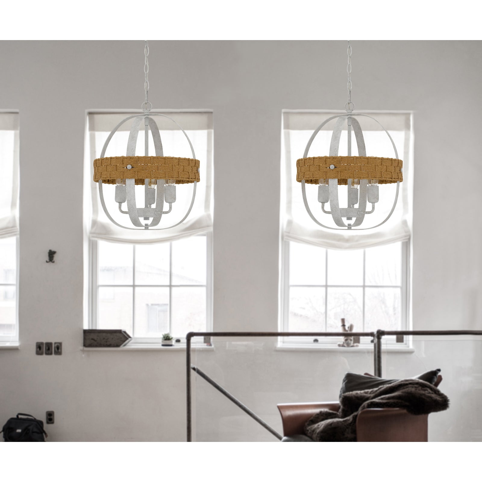 The FX-3816-3 Barton metal chandelier is an exquisite lighting fixture designed to enhance the ambiance of any kitchen, living room, or dining room. With a durable metal construction, this chandelier features a striking white washed finish complemented by rattan accents. It accommodates three E26 base bulbs with a maximum wattage of 60W each, ensuring ample illumination. The package includes a matching canopy and a generous 72-inch chain for easy installation. Measuring 17.00 inches in length, 11.50 inches in width, and 19.50 inches in height, this stunning chandelier is not only a focal point of decor but is also backed by a one-year warranty. Assembly is required, and it usually ships within three business days.