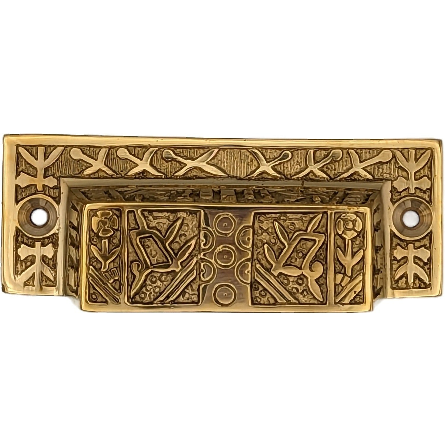 3 1/2 Inch Overall (3 Inch c-c) Solid Brass Eastlake Cup or Bin Pull