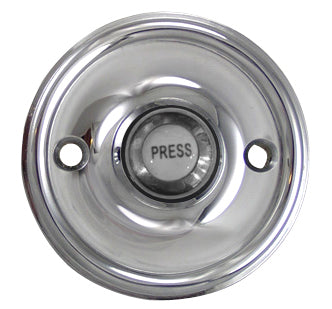 This doorbell measures 2 1/4 inches in diameter and connects easily with to contact screws. 24 Volt maximum (normal doorbell circuitry). Finishes available include Polished Brass, Black Bronze, Polished Chrome, and Satin Nickel. The average lead time for this particular product is 2 to 4 Business Days.