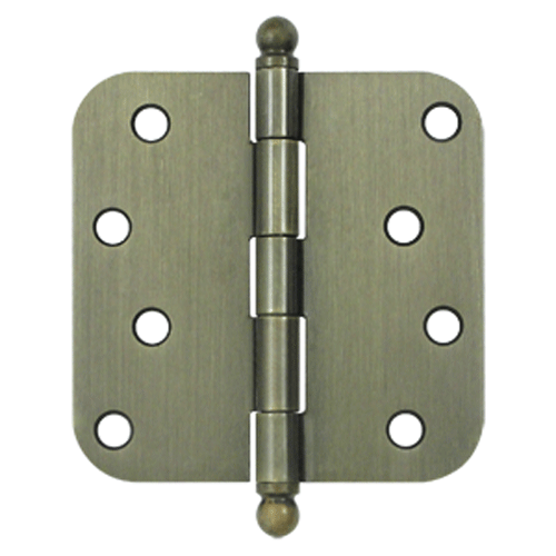 4 Inch x 4 Inch Ball Tip Steel Hinge (Antique Brass Finish) - Sold in Pairs - This hinge measures 4 inches tall by 4 inches wide with 5/8 radius corners. Comes complete with mounting hardware.