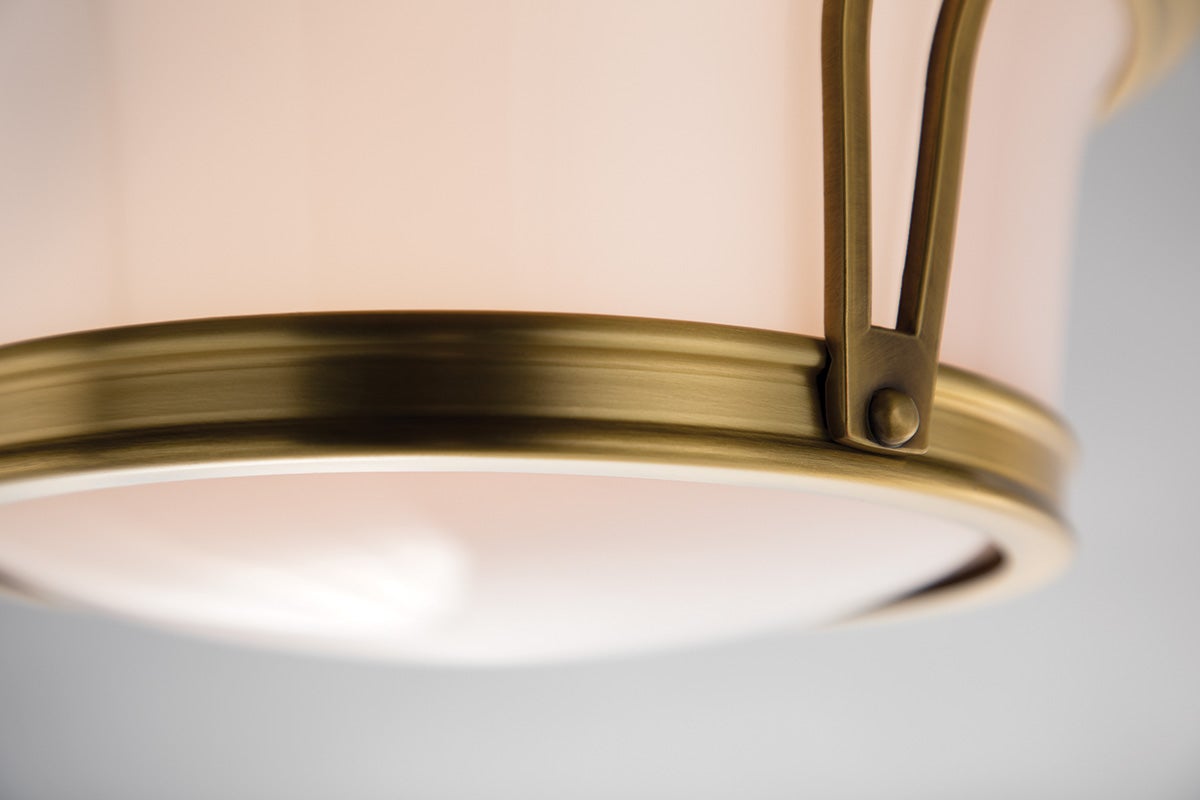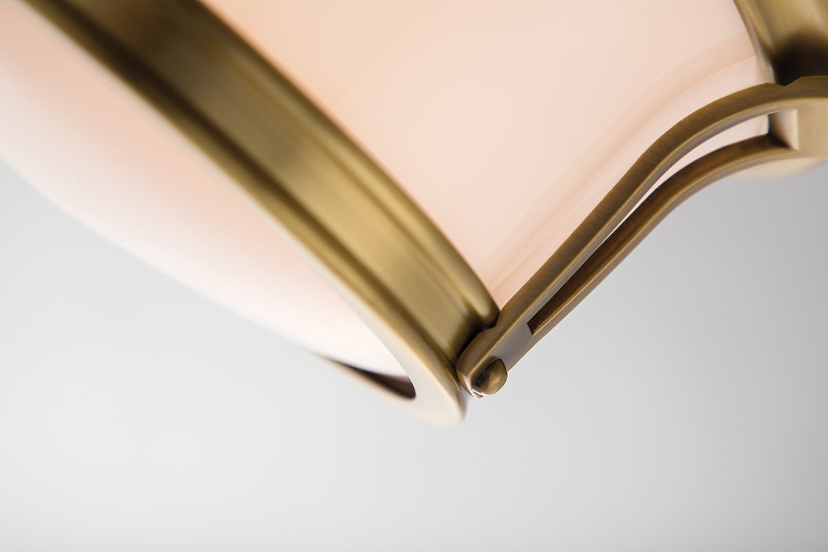 The Newport Table Lamp by Hudson Valley Lighting features a beautifully designed opal glossy glass shade that stands 5.25 inches tall and spans 13 inches in diameter. This lamp accommodates two E26 medium base bulbs with a maximum wattage of 60W each, ensuring ample light for any space. With its aged brass finish option, this table lamp combines elegance and functionality, making it a perfect addition to both classic and contemporary settings. Additionally, it is UL Damp rated, making it suitable for humid environments.