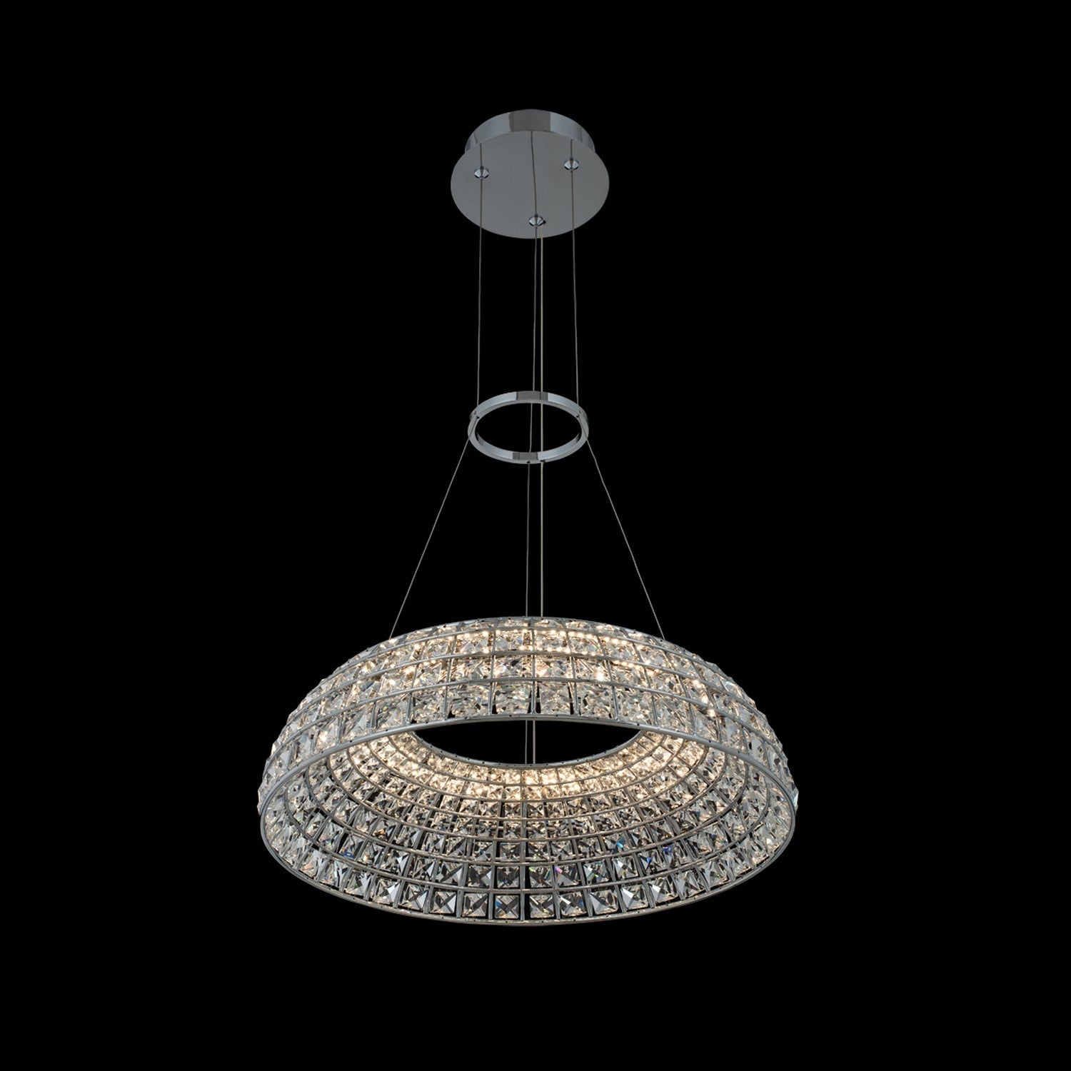 The Nuvole 20? LED Pendant is a striking addition to contemporary interiors, showcased in a Casual Luxury design style. Crafted from durable steel with a chrome finish, this pendant features clear Firenze crystals that refract light beautifully, creating a warm glow. Measuring 20 inches in diameter and 5 inches in height, it is suspended by cables with a generous length of 96 inches, making it flexible for various hanging heights. The pendant accommodates LED bulbs (included), with a dimmable capability and a maximum wattage of 30, ensuring optimal illumination. UL – ETL safety rated for indoor use, this piece from Allegri's Nuvole Collection is perfect for those looking to elevate their space with elegance.