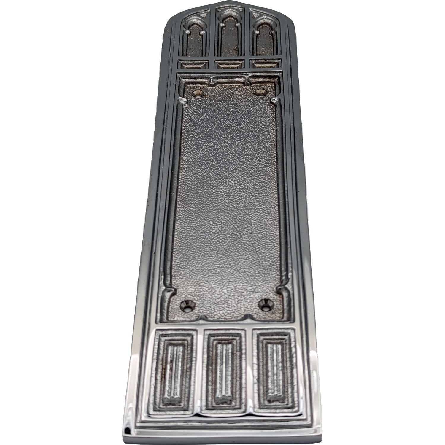 This Push Plate measures 12 1/4 inches by 3 1/4 inches. Highly ornate detailing and solid brass construction. Available in Polished Brass, Antique Brass, and Polished Chrome.
