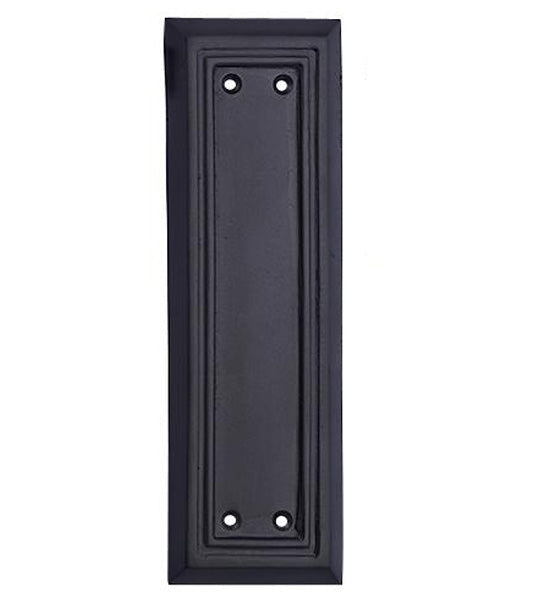 This Push Plate is crafted from solid brass and hand finished. Measuring 2 1/2 inch wide by 8 1/4 inch tall. This particular product has a lead time of approximately 1 to 2 business days.