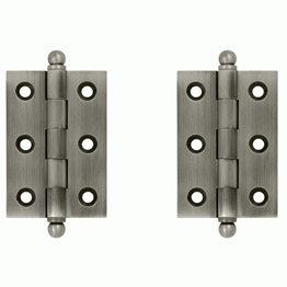 2 1/2 Inch x 1 11/16 Inch Solid Brass Cabinet Hinge (Antique Nickel Finish) - This hinge measures 2 1/2 inches tall by 1 11/16 inches wide and comes standard with a ball tip. The hinge also comes complete with the mounting hardware.