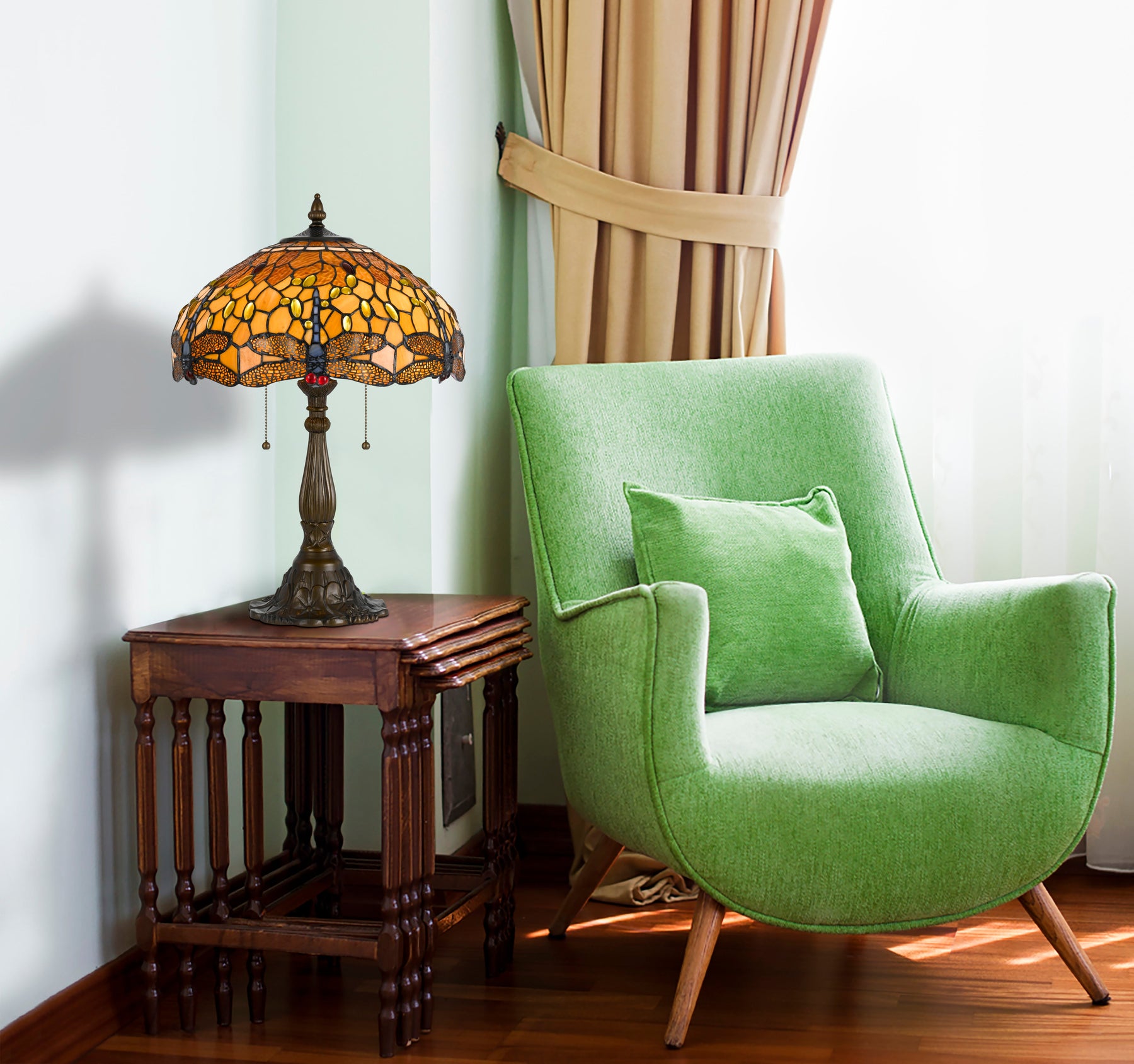 The BO-2372TB Table Lamp in Antique Brass combines durability and elegance with its sturdy zinc cast base and stunning Tiffany stained glass shade. This lamp features dual lights, operated by a convenient pull chain mechanism, making it a practical addition to any space. With a height of 23 inches and a 6-foot cord, it offers flexibility in placement. Accommodating two E26 base bulbs with a maximum wattage of 60W each, it is ideal for creating a warm ambient glow. Additionally, it ships in one carton and comes with a one-year warranty, ensuring peace of mind for your purchase.