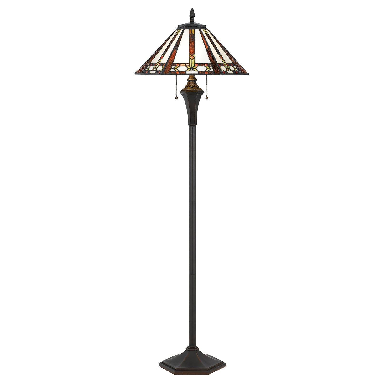 The BO-2717FL 60W X 2 Tiffany Floor Lamp is a stunning addition to any room, featuring a durable resin construction that ensures longevity. This lamp is designed with a functional double pull chain for easy operation and includes a colorful stained glass Tiffany shade that adds a unique touch to your decor. With two lights, each capable of 60W, this lamp offers a vibrant lighting solution with a convenient on/off switch. Packaged in one carton, it requires assembly and typically ships within 3 business days. Covered by a one-year warranty against defects, this lamp combines style and functionality perfectly.