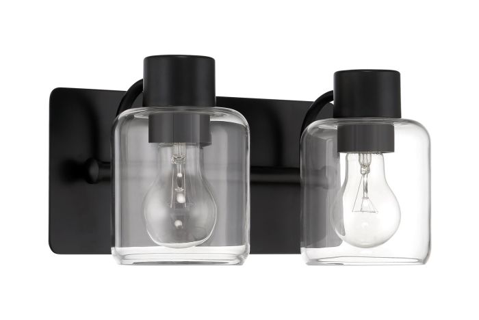 The Rori 2 Light Vanity in Flat Black offers a perfect blend of transitional style and modern functionality. Designed for wall mounting, this vanity light requires two medium base 60 watt bulbs (not included) to illuminate your space. Measuring 12.38 inches in width, 6.50 inches in height, and featuring a 6.75-inch extension, it is both stylish and practical. With a damp rating, this fixture is suitable for use in bathrooms and other humid areas, ensuring that it remains both safe and stylish in any setting.