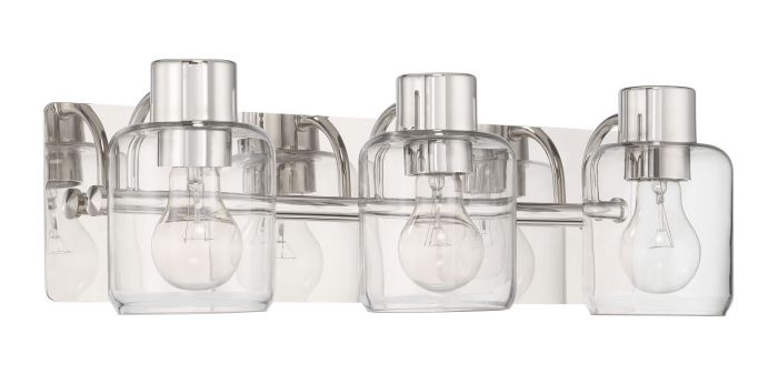 The Rori 3 Light Vanity in Polished Nickel is a perfect blend of transitional style and casual elegance. This vanity fixture features three clear glass shades suspended from arched arms and supported by wide rectangular back plates, requiring three medium base 60-watt bulbs (not included). With a width of 20.25 inches and a height of 6.50 inches, it has a 6.75-inch extension and is damp rated, making it ideal for bathrooms and other humid spaces. It comes with a 1-year limited warranty and operates at 120V/60Hz.