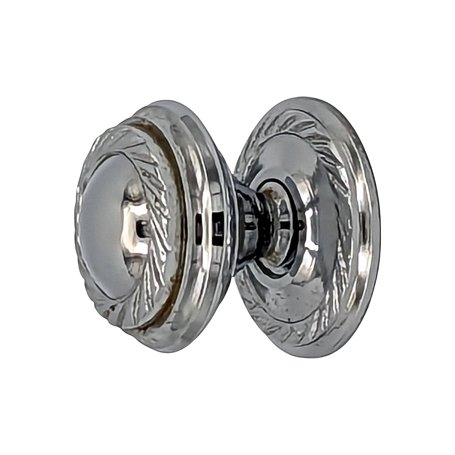 1 Inch Solid Brass Georgian Roped Round Knob - Measures 1 inch in diameter with a projection of 1 inch. Comes complete with mounting hardware.