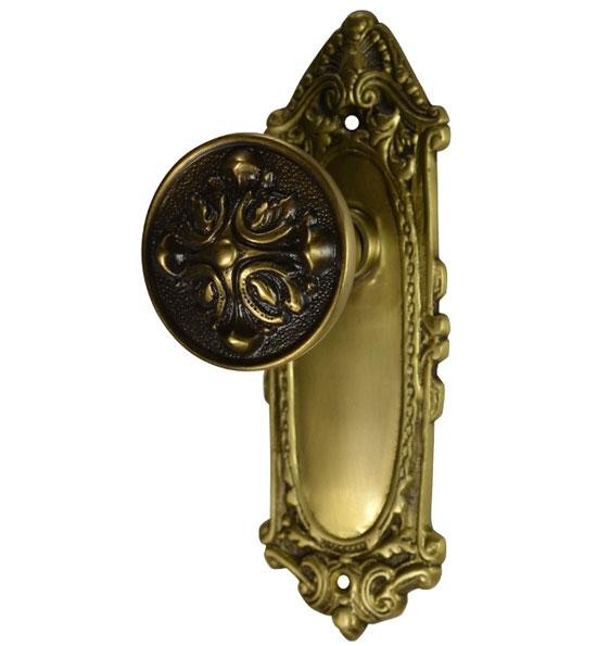 Ornate Victorian Long Backplate Door Set with Romanesque Door Knobs (Several Finishes Available)