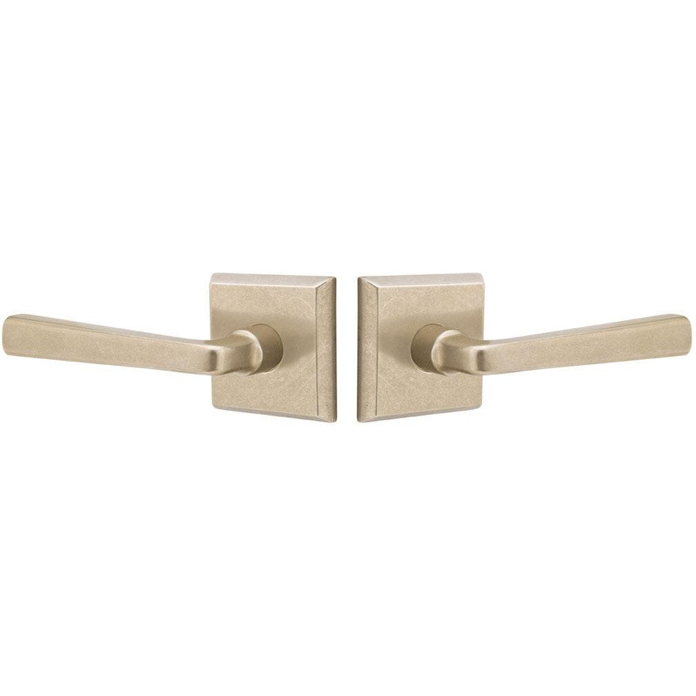 This lever door knob is constructed from solid brass and measures 4 7/8 inches overall with a 2 3/8 inch projection. Includes the two levers and door rosettes. Functional sets also include the lever latch, face plate and strike plate. This set is made for modern doors and it fits any door thickness between 1 3/8 inch to 2 1/4 inches thick. Functional sets come with a 2 3/8 inch back set latch - and a 2 3/4 inch back set may be requested at no additional charge. This door lever set comes complete with mounting hardware. Handing is required for leversets. The average lead time for this lever is approximately 3 to 5 business days.