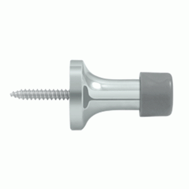1 1/2 Inch Solid Brass Baseboard Door Bumper (Polished Chrome Finish) - measures 1 1/2 inches long. This style of door stop provides protection for the door by preventing it from banging against a wall causing damage to drywall or plaster and paint. This door stop is available in many designer finishes and comes complete with the mounting hardware.