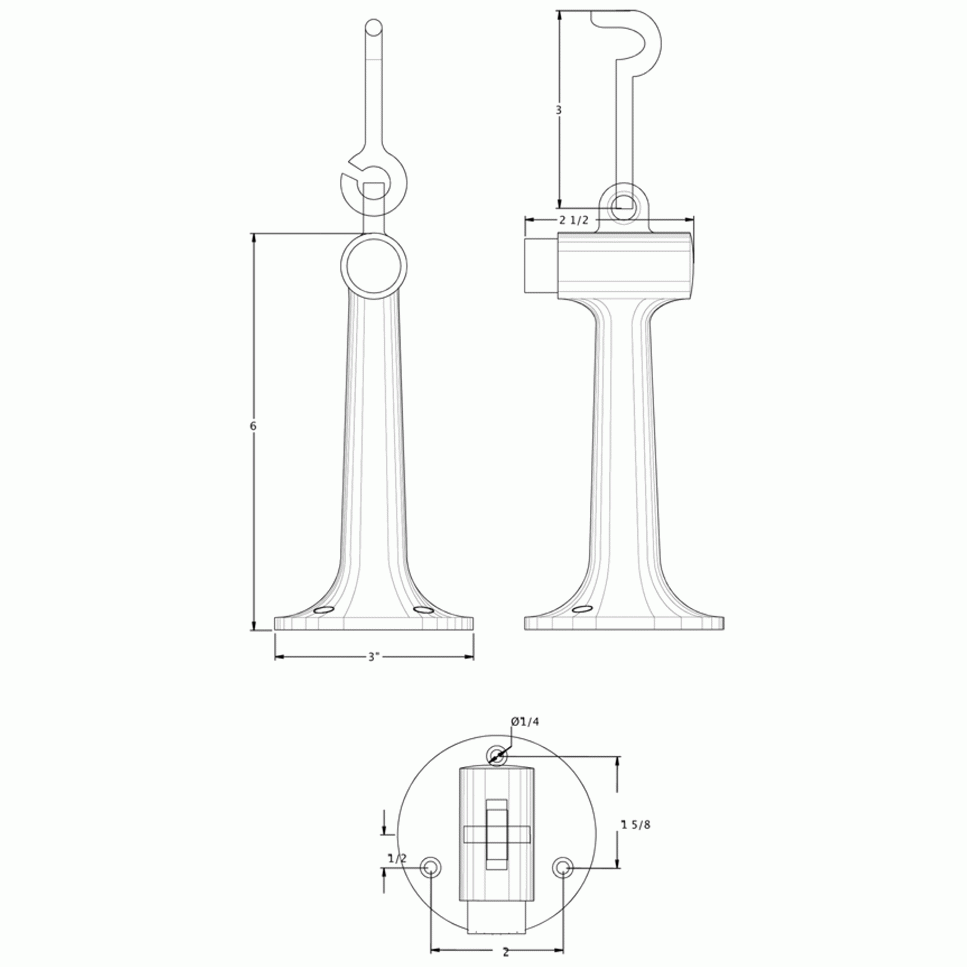 Floor Mounted Bumper With Hook & Eye - a solid brass universal modern floor mounted bumper (Polished Chrome Finish) - this measures 6 inch tall and 3 inch in diameter. It also comes complete with the mounting screws. This style of door stop provides protection for the door by preventing it from banging against a wall causing damage to drywall or plaster and paint. This door stop is available in many designer finishes and comes complete with the mounting hardware.