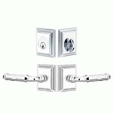 - Emtek Solid Brass Ribbon & Reed Door Lever Deadbolt with Wilshire Rosette (Polished Chrome Finish)