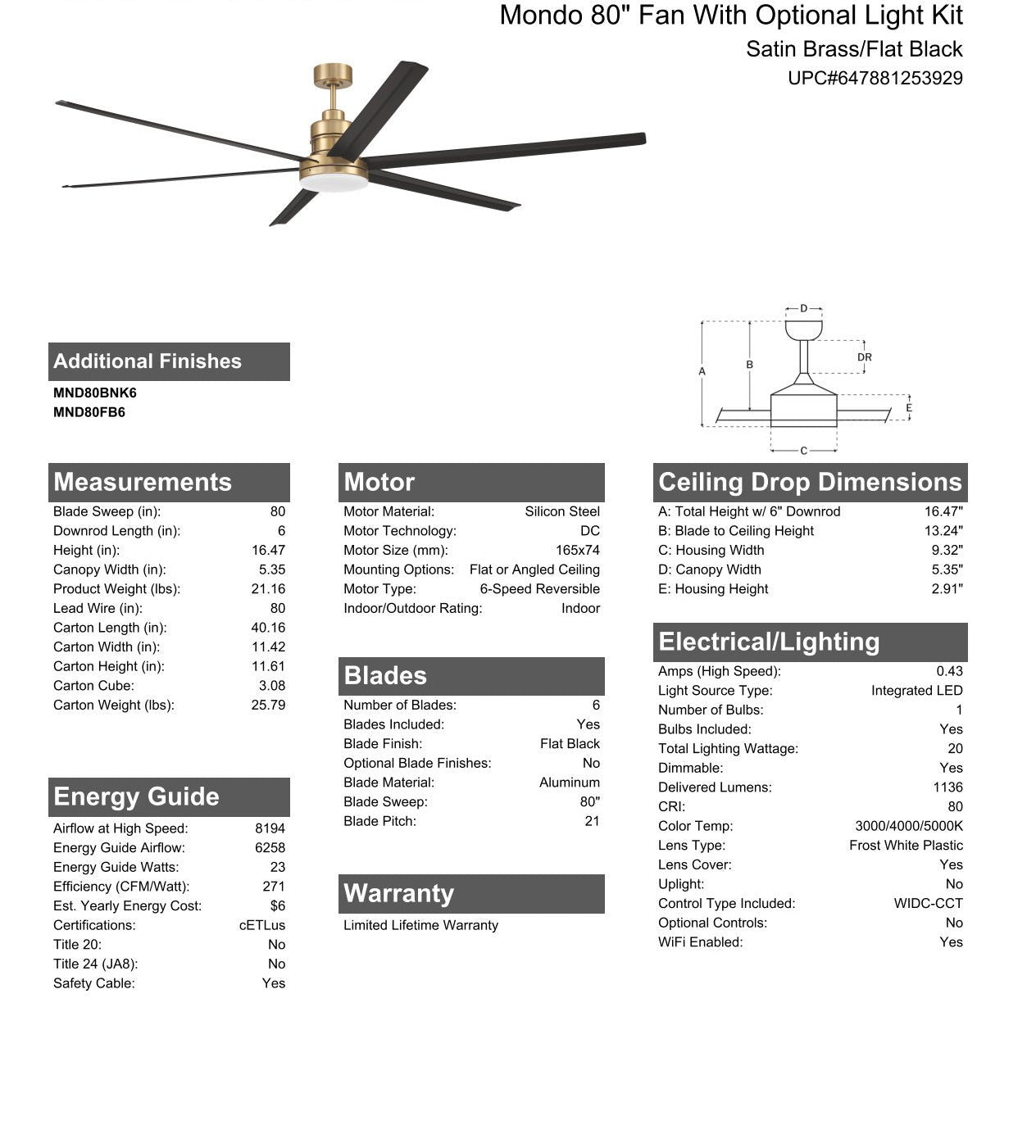 Blade Sweep Opt (in.) 80