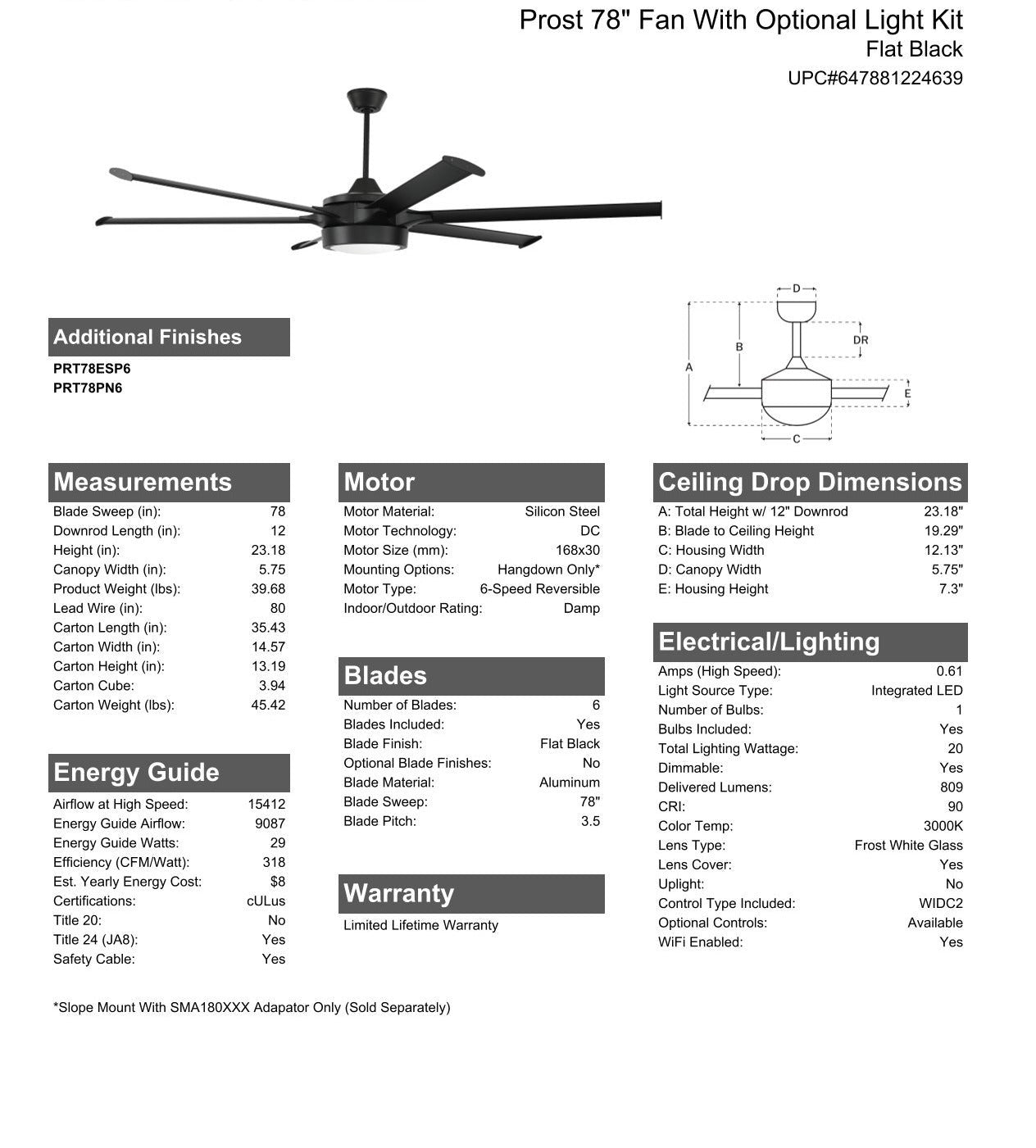 - Custom Prost 78" Aluminum Blades Included Flat Black