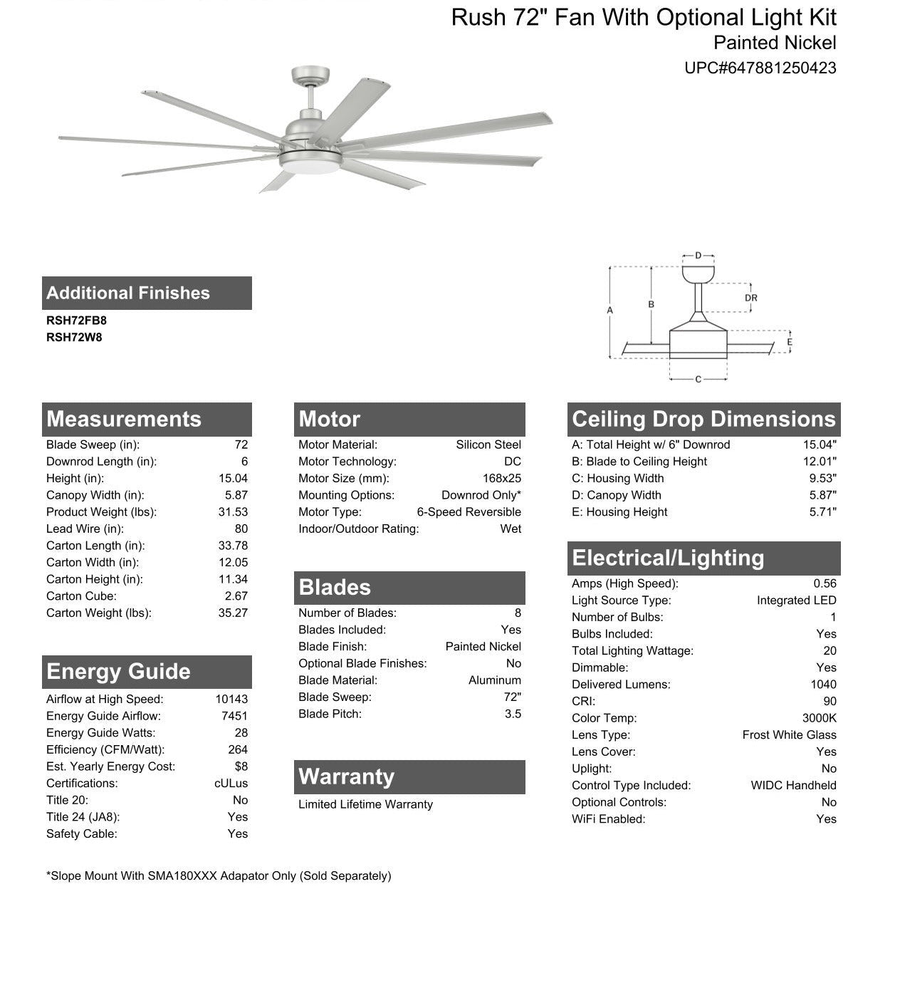 Blade Sweep Opt (in.) 72