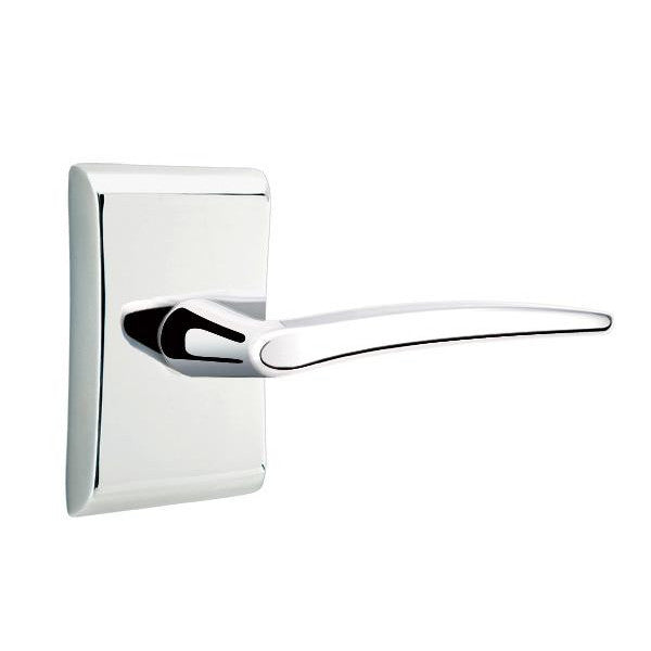 The Poseidon lever door knob shown here measures 5 inches in length by 2 1/2 inches wide with a 1 3/8 inch clearance. The neos rosette measures 2 5/8 inches wide by 4 inches in length. Includes the two levers and door rosettes. Functional sets also include the lever latch, face plate and strike plate. This set is made for modern doors and it fits any door thickness between 1 3/8 inch to 2 1/4 inches thick. Functional sets come with a 2 3/8 inch back set latch - and a 2 3/4 inch back set may be requested at no additional charge. This door lever set comes complete with mounting hardware. Handing is required for leversets. This particular product has a lead time of approximately 3 to 5 business days.