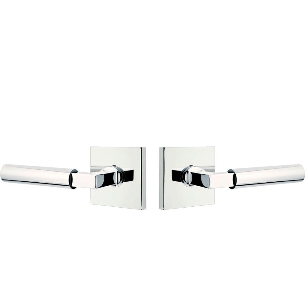 This brass lever door knob measures 5 inches overall with a 2 1/2 inch projection. Includes the two levers and door rosettes. Functional sets also include the lever latch, face plate and strike plate. This set is made for modern doors and it fits any door thickness between 1 3/8 inch to 2 1/4 inches thick. Functional sets come with a 2 3/8 inch back set latch - and a 2 3/4 inch back set may be requested at no additional charge. This door lever set comes complete with mounting hardware. Hardware is required for leversets. The average lead time for this lever is approximately 3 to 5 business days.