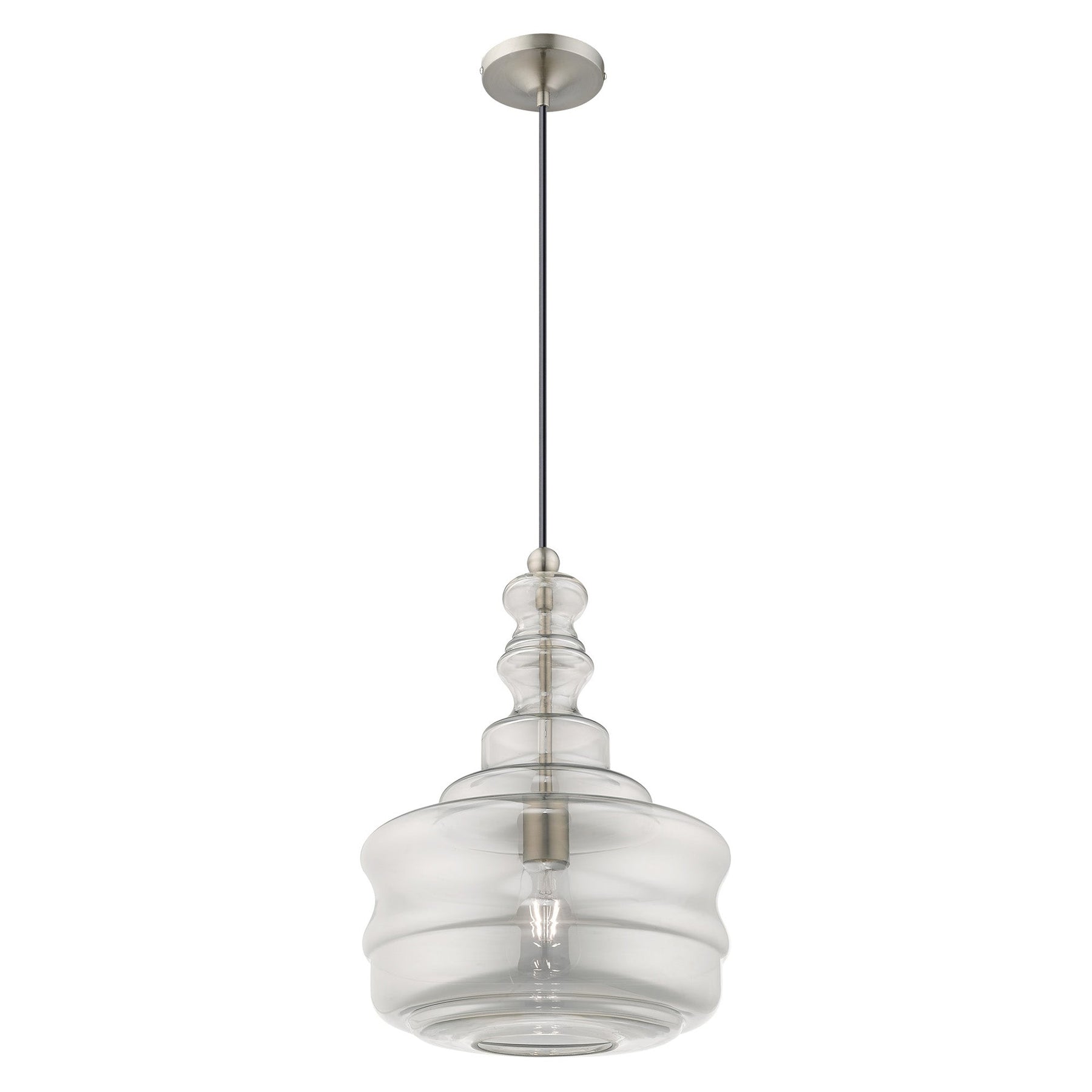 The 41246-91 Art Glass Mini Pendant is a captivating addition to any room, blending retro aesthetics with contemporary style. This fixture features a stunning hand-blown smoke glass shade and an elegant brushed nickel finish, showcasing a transitional design that suits a variety of decor styles. With adjustable height ranging from 19.25 inches to 90 inches and a diameter of 12.625 inches, it provides versatile installation options. Designed to accommodate sloped ceilings, this mini pendant uses a single medium base bulb (not included) with a maximum wattage of 60W. The pendant is suitable for damp locations, making it a practical choice for spaces like bathrooms or covered patios.