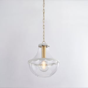 The Alaina Table Lamp by Mitzi features a stunning glass shade that brings a touch of elegance to any space. With a height of 16.50 inches and a width of 14.25 inches, this lamp is designed to stand out. It operates with one E26 medium base bulb (not included) and supports a maximum wattage of 60W, making it perfect for brightening up your living room or bedroom. The lamp is finished in Aged Brass (AGB) for a sophisticated look and is rated for UL Damp, ensuring it can be used in moisture-prone areas.